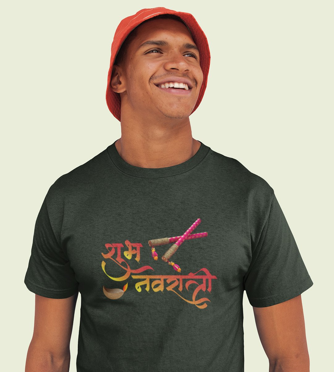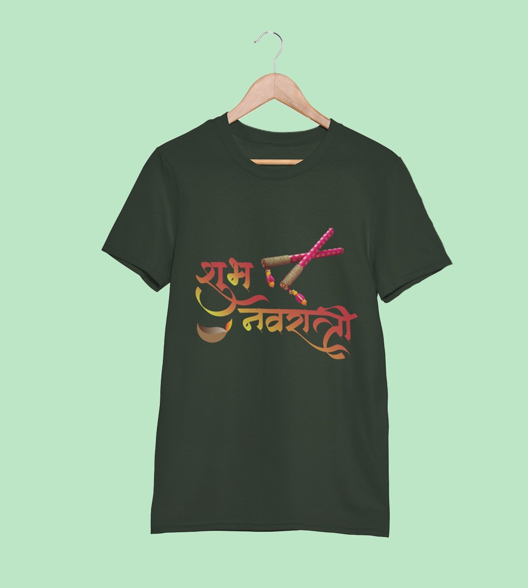 Shubh Navratri printed unisex adults round neck cotton half-sleeve green tshirt specially for Navratri festival/ Durga puja