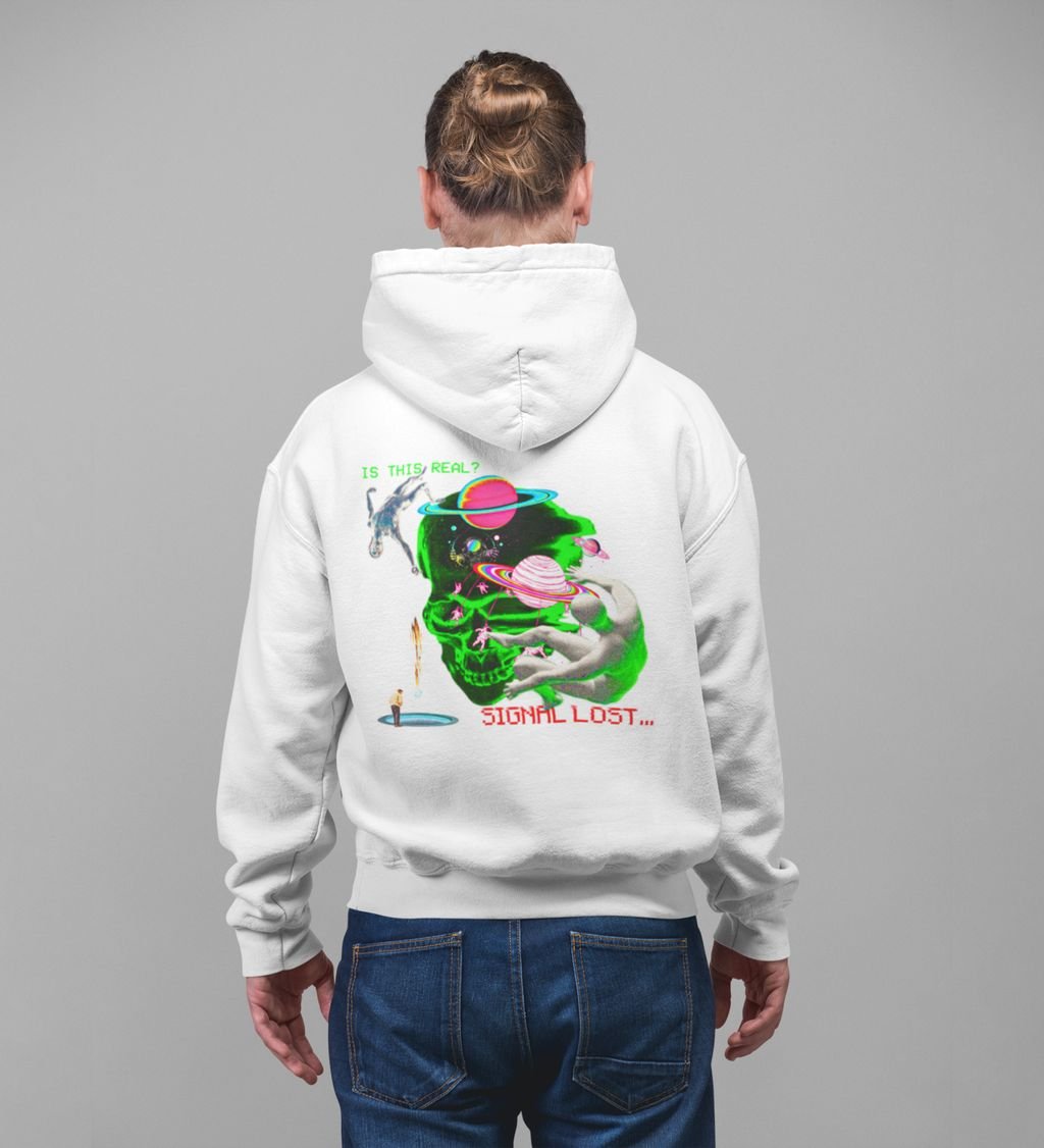 Signal Lost Disconnect and Relax White Cotton Printed Hoodies For Men