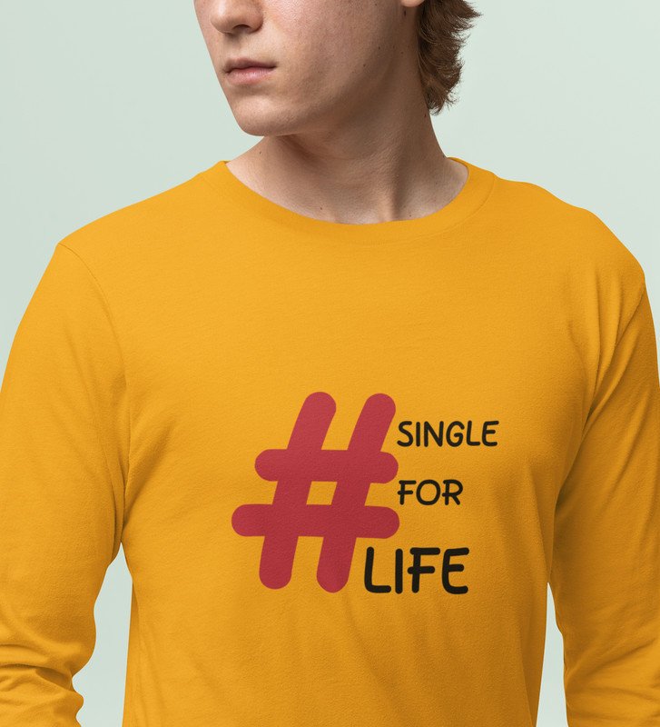 Single For Life : Sublimation Printed (yellow) Full Sleeve T-Shirt For Singles