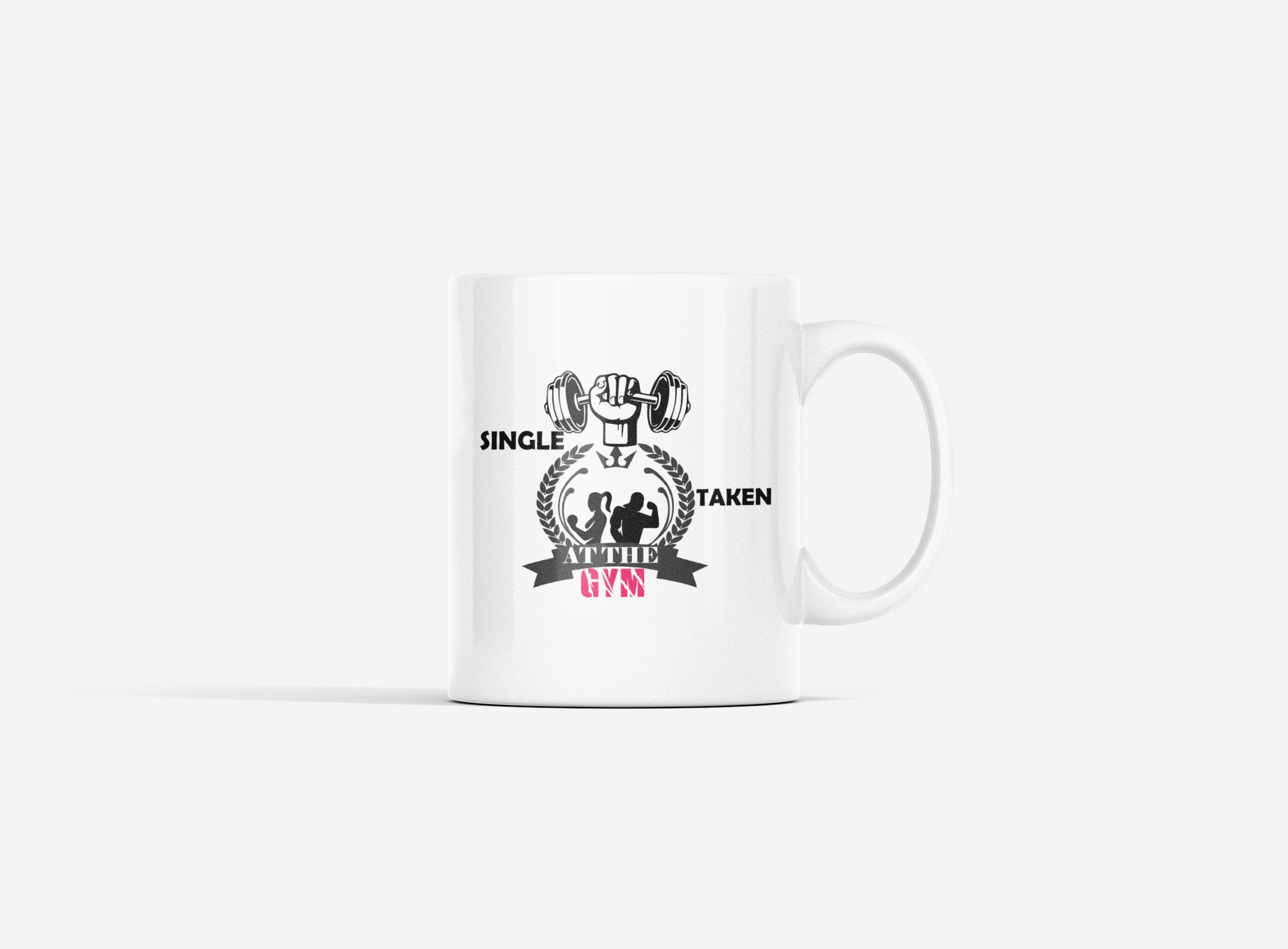 Single, Taken At The Gym - gym themed printed ceramic white coffee and tea mugs/ cups for gym lovers