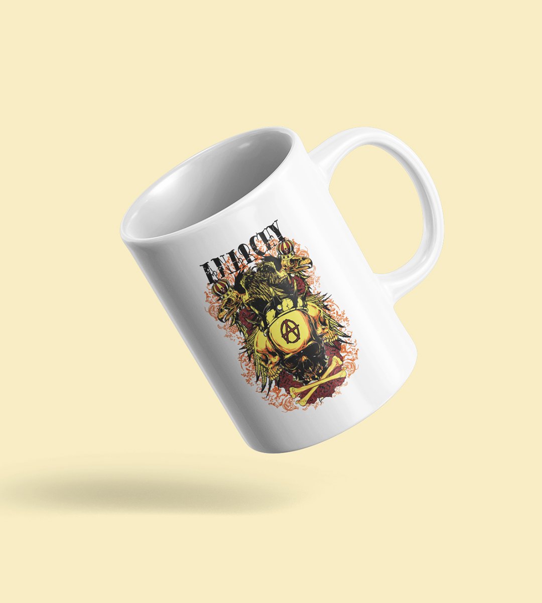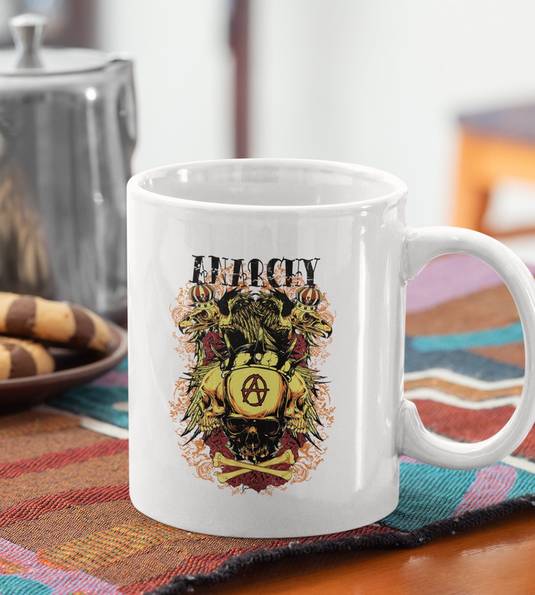 Anarchy, (Skull and bones crossed) - animation themed printed ceramic white coffee and tea mugs/ cups for animation lovers