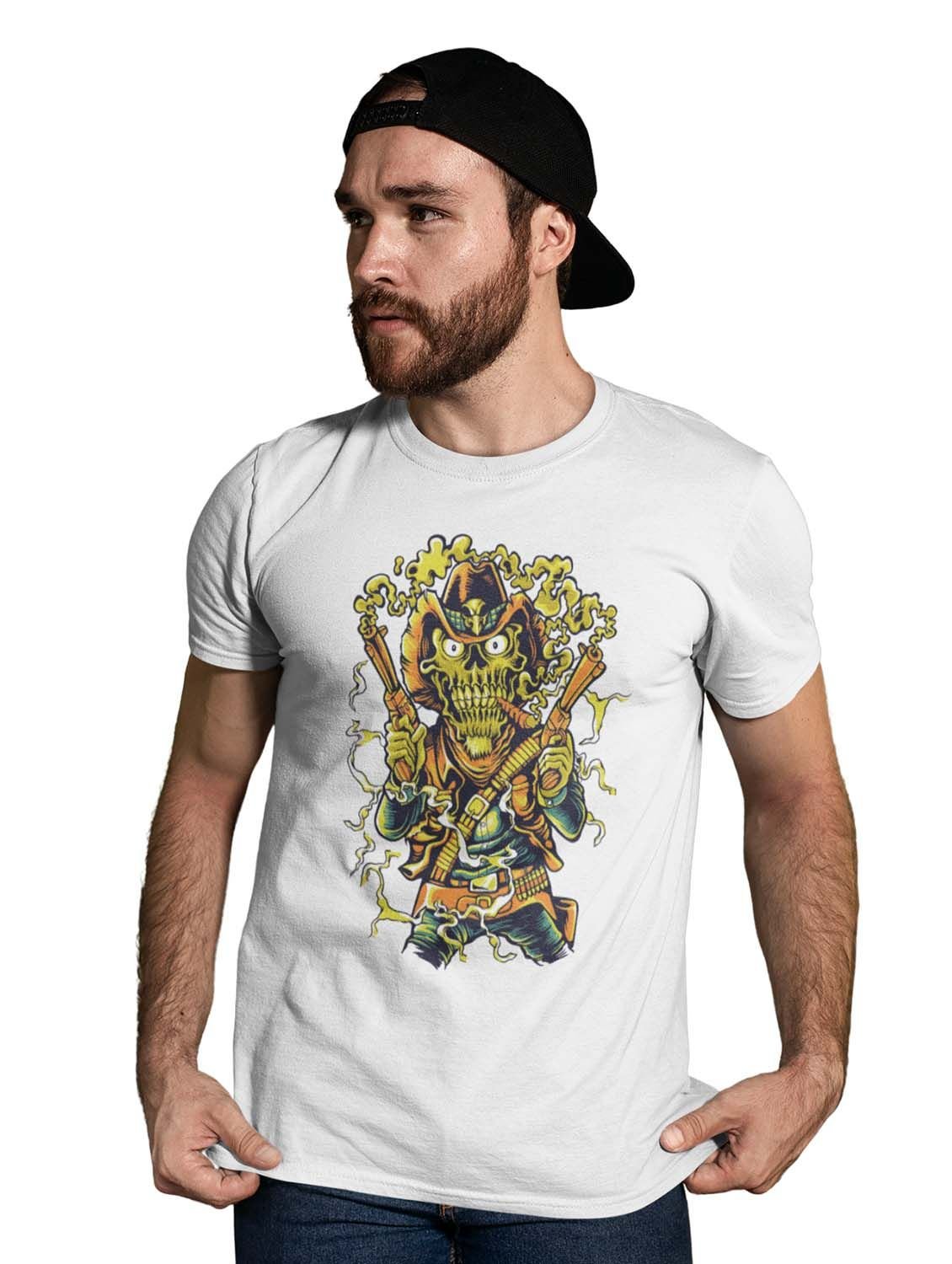 The Cowboy White Round Neck Cotton Half Sleeved T-Shirt with Printed Graphics