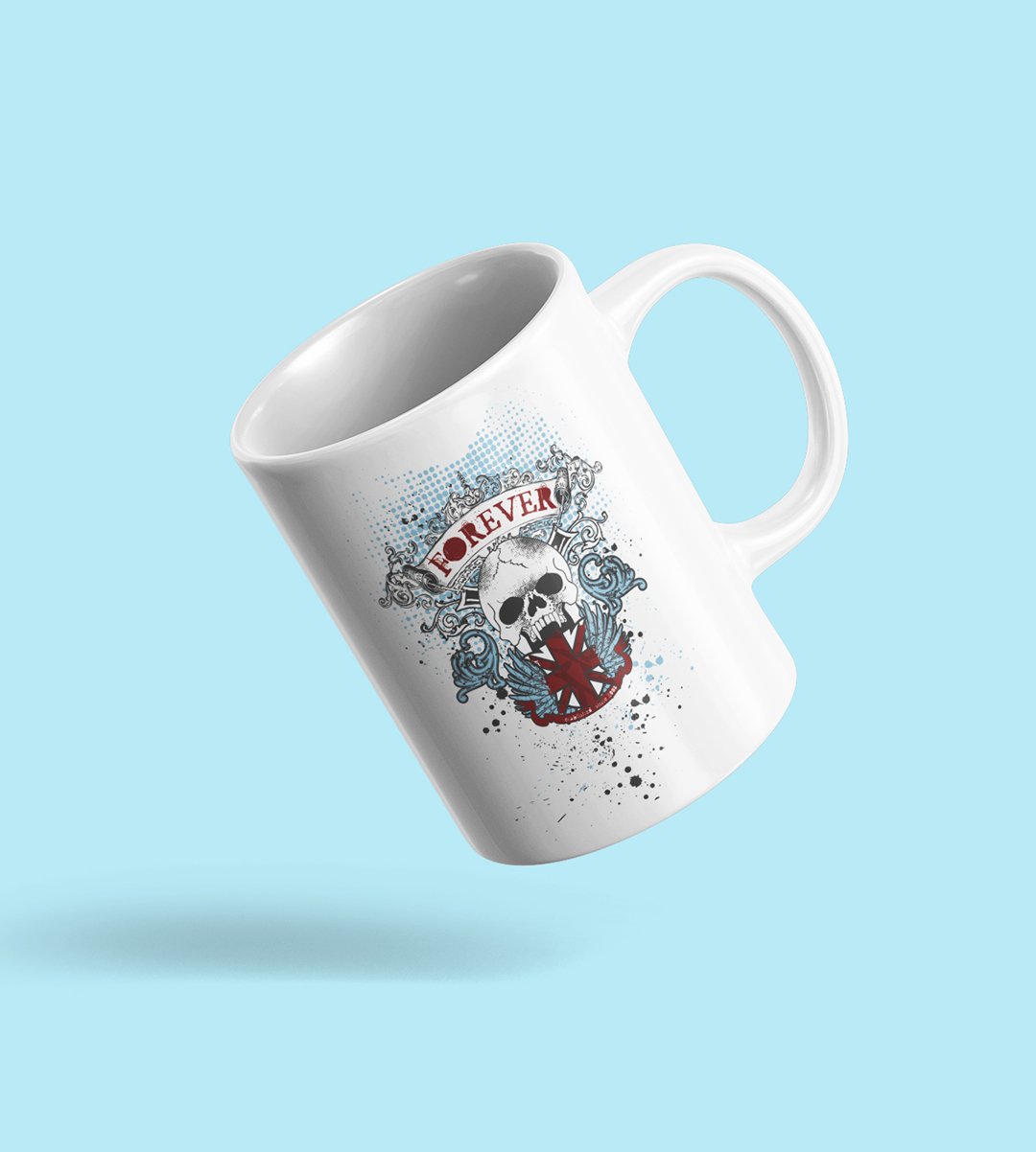 Skull Forever- animation themed printed ceramic white coffee and tea mugs/ cups for animation lovers
