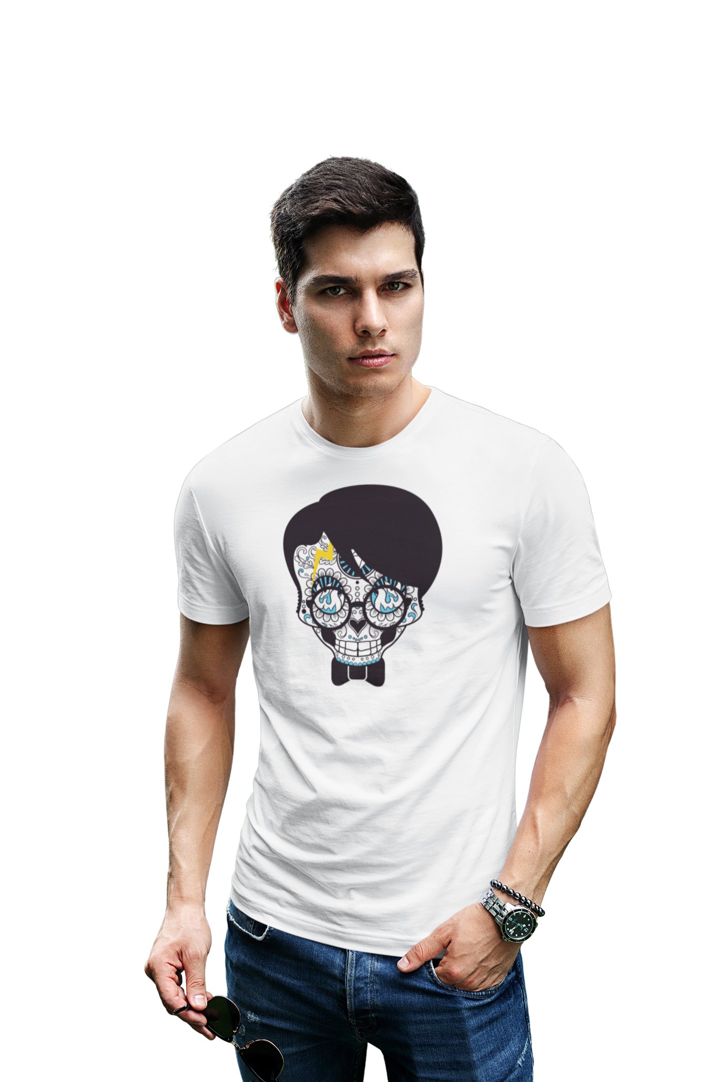 Skull Illustration Graphic tees White- printed T-shirts - Men's stylish clothing - Cool tees for boys