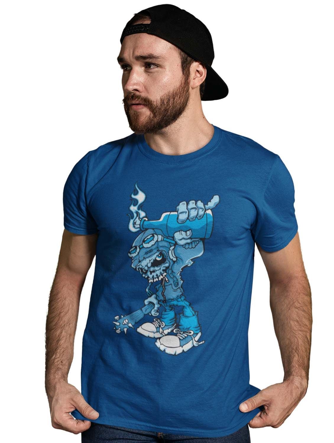 Demon- The Gamer Blue Round Neck Cotton Half Sleeved T-Shirt with Printed Graphics