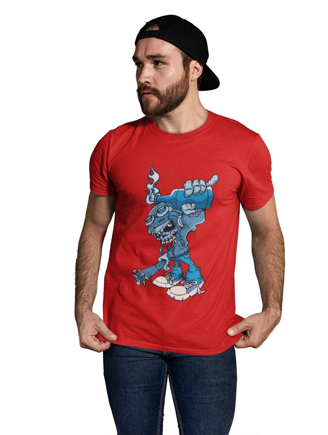 Riotous Cranium Red Round Neck Cotton Half Sleeved T-Shirt with Printed Graphics