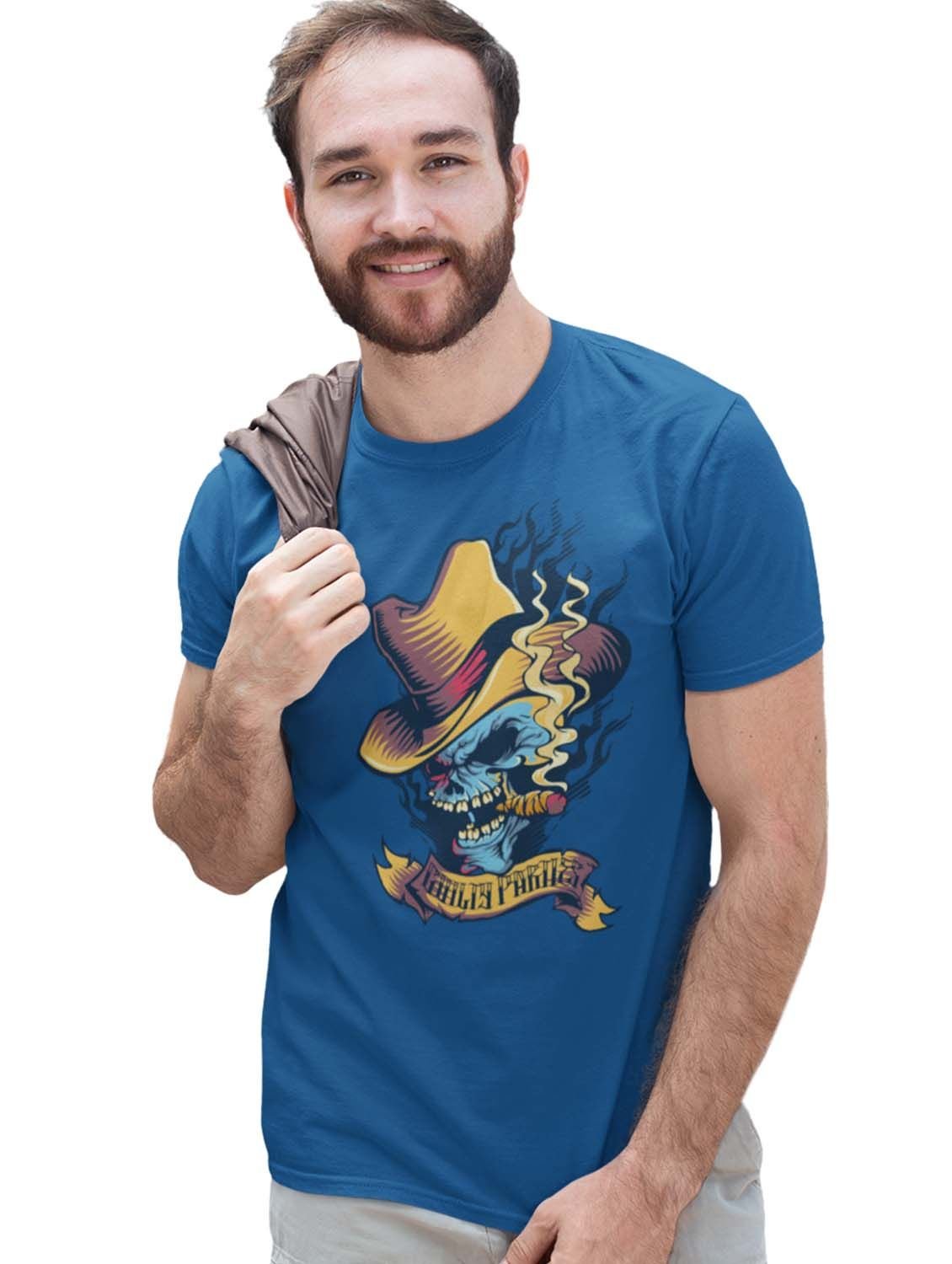 Rock N Roll Forever Blue Round Neck Cotton Half Sleeved T-Shirt with Printed Graphics