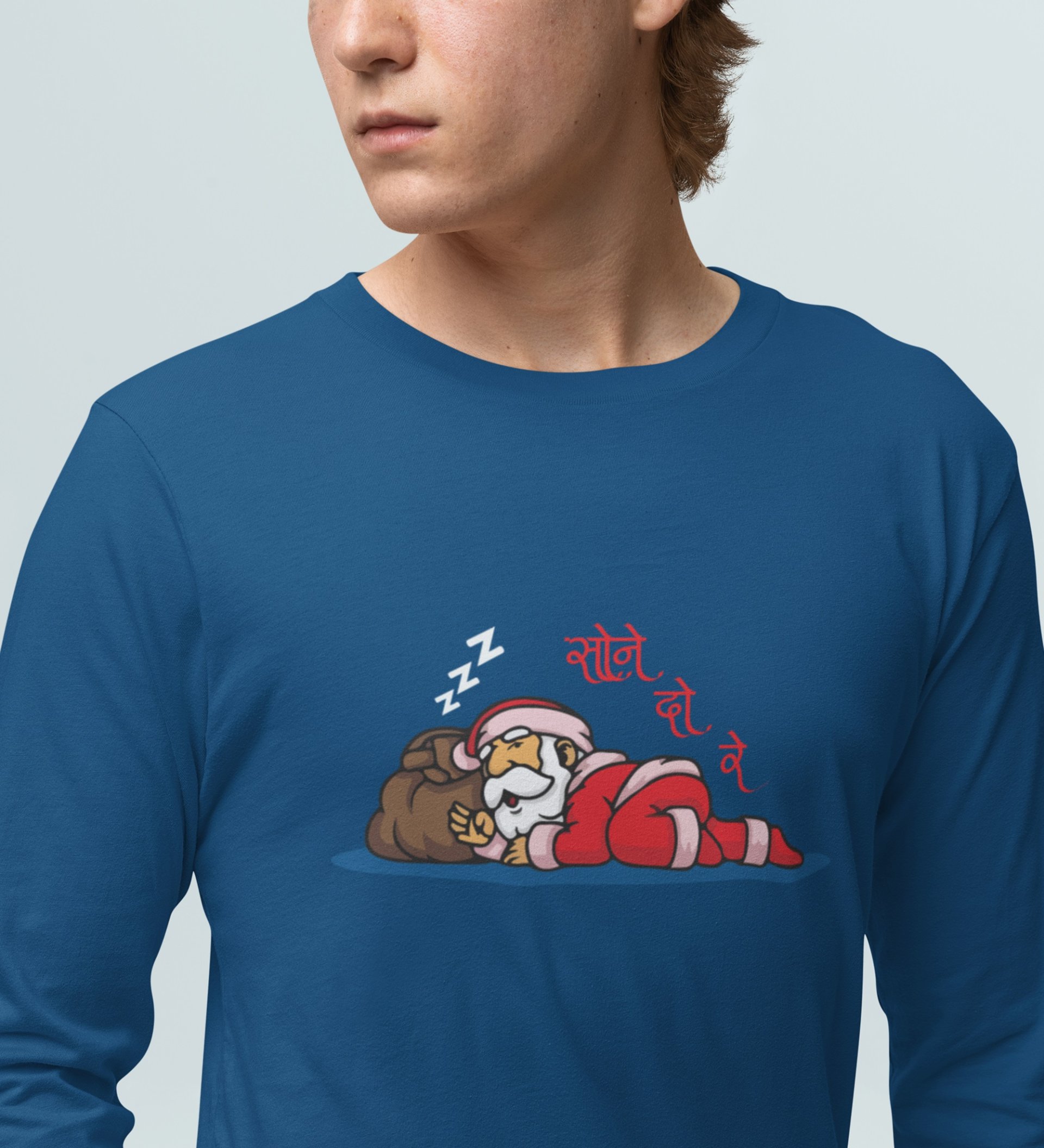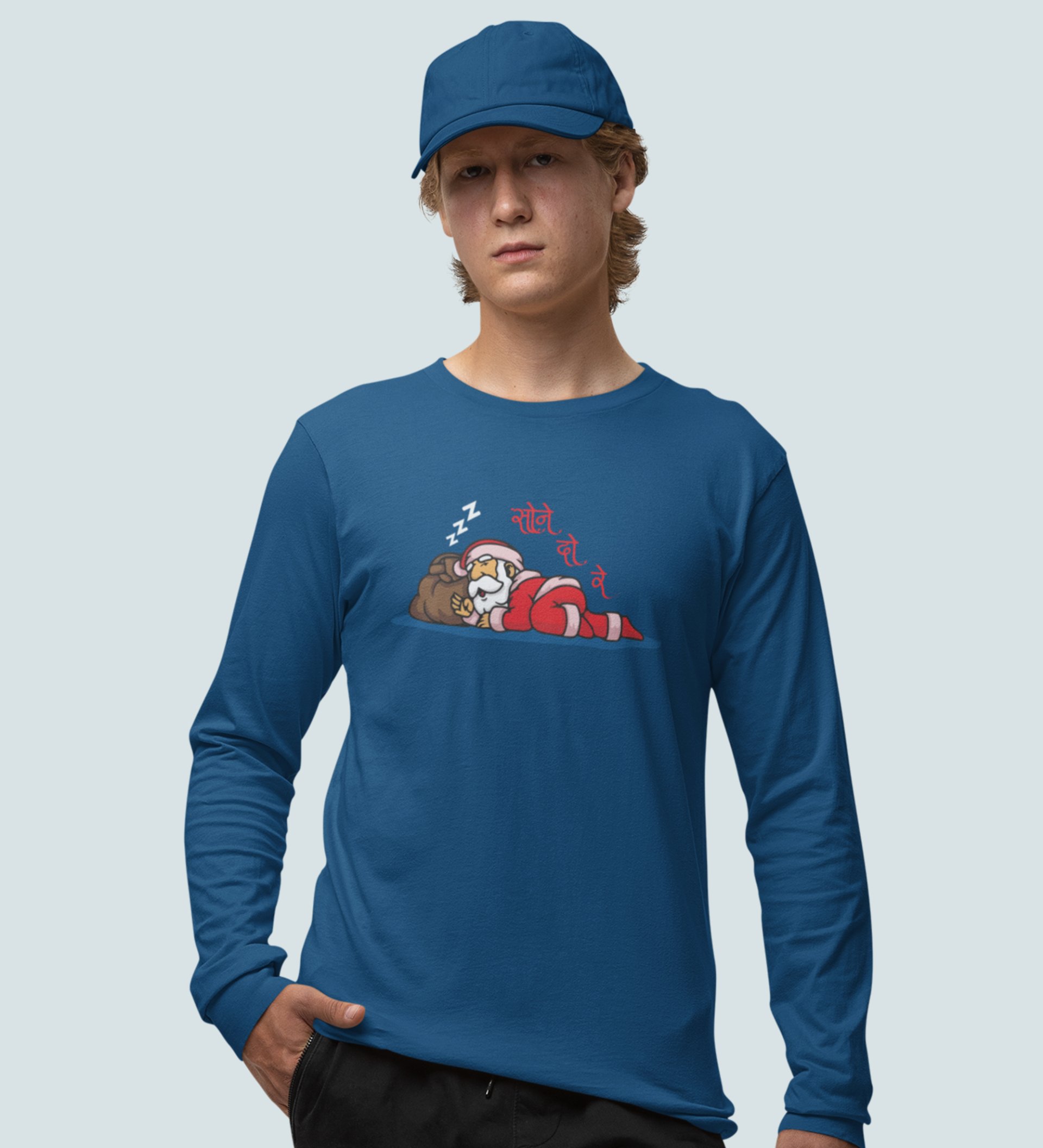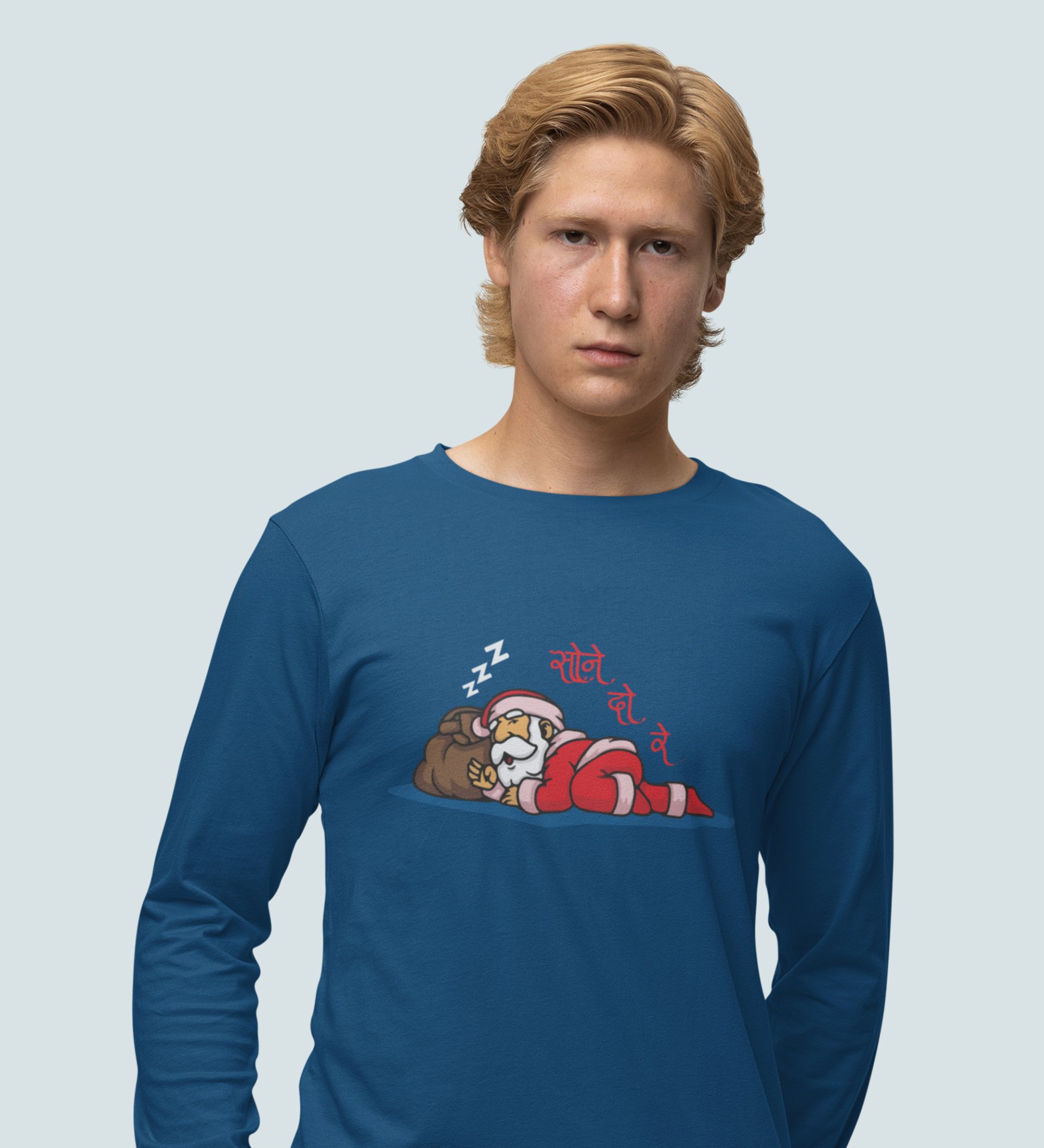 Sleepy Santa: Cute DesignerFull Sleeve T-shirt Blue Unique Gift For Kids Boys Girls