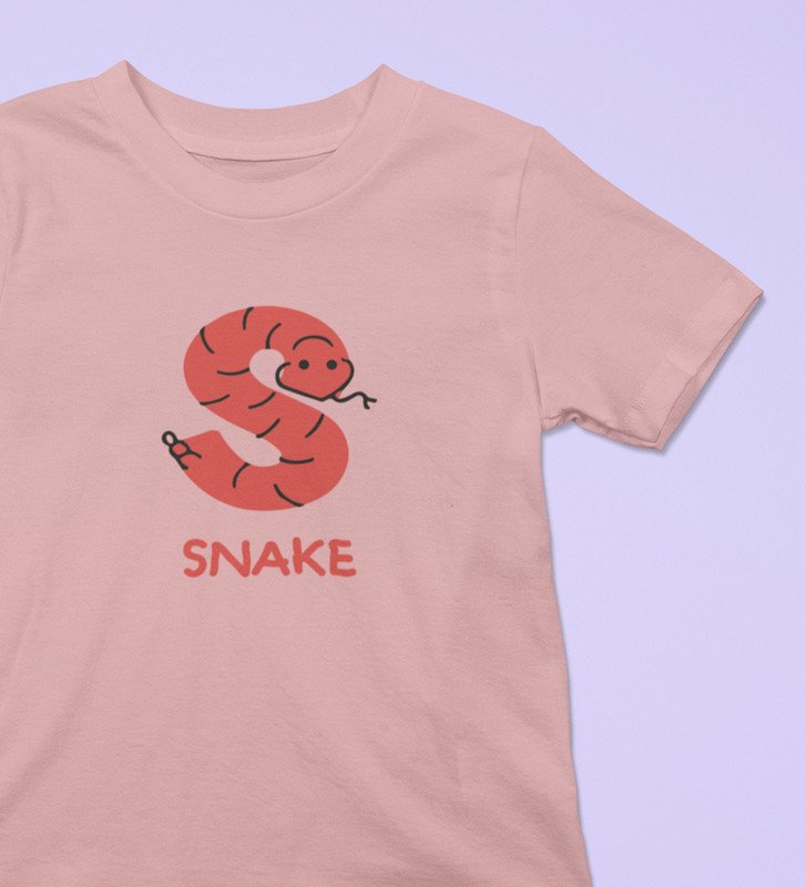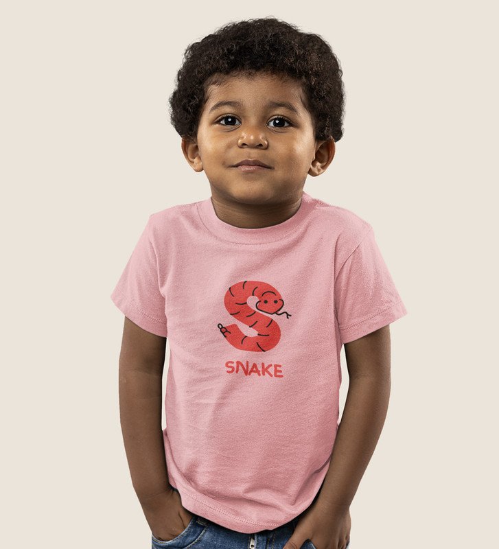 Slippery Snake, Boys Printed Crew Neck Tshirt (Baby pink)