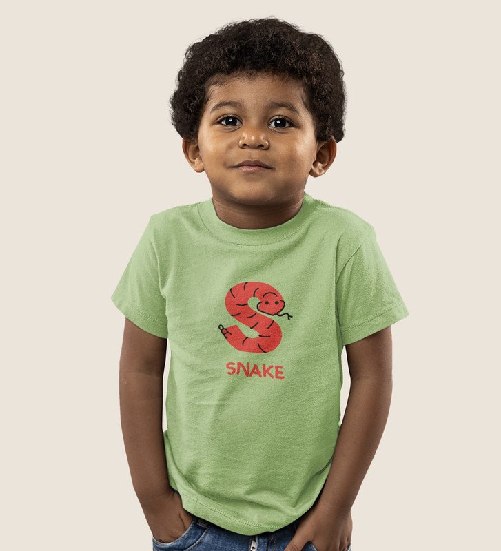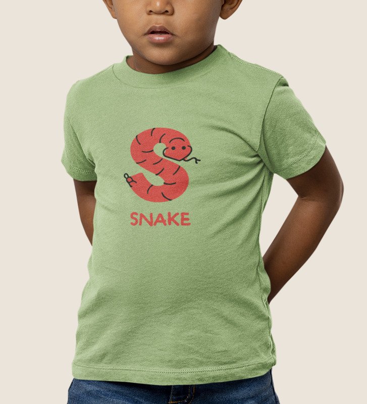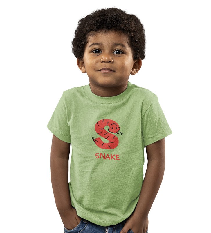 Slippery Snake, Boys Printed Crew Neck Tshirt (Olive)