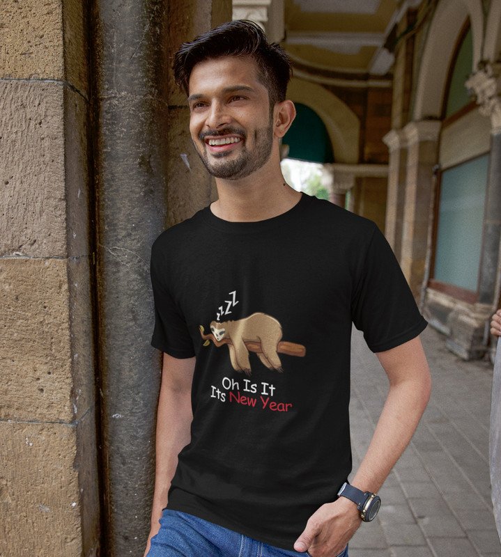 Sloth's New Year Black Graphic Printed T-shirt For Mens Boys