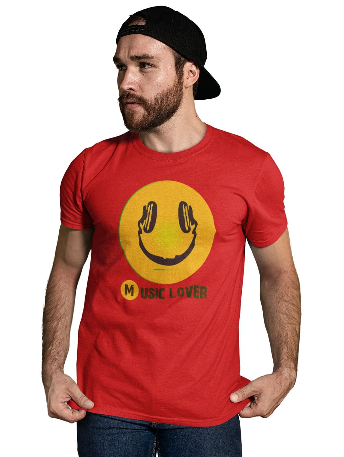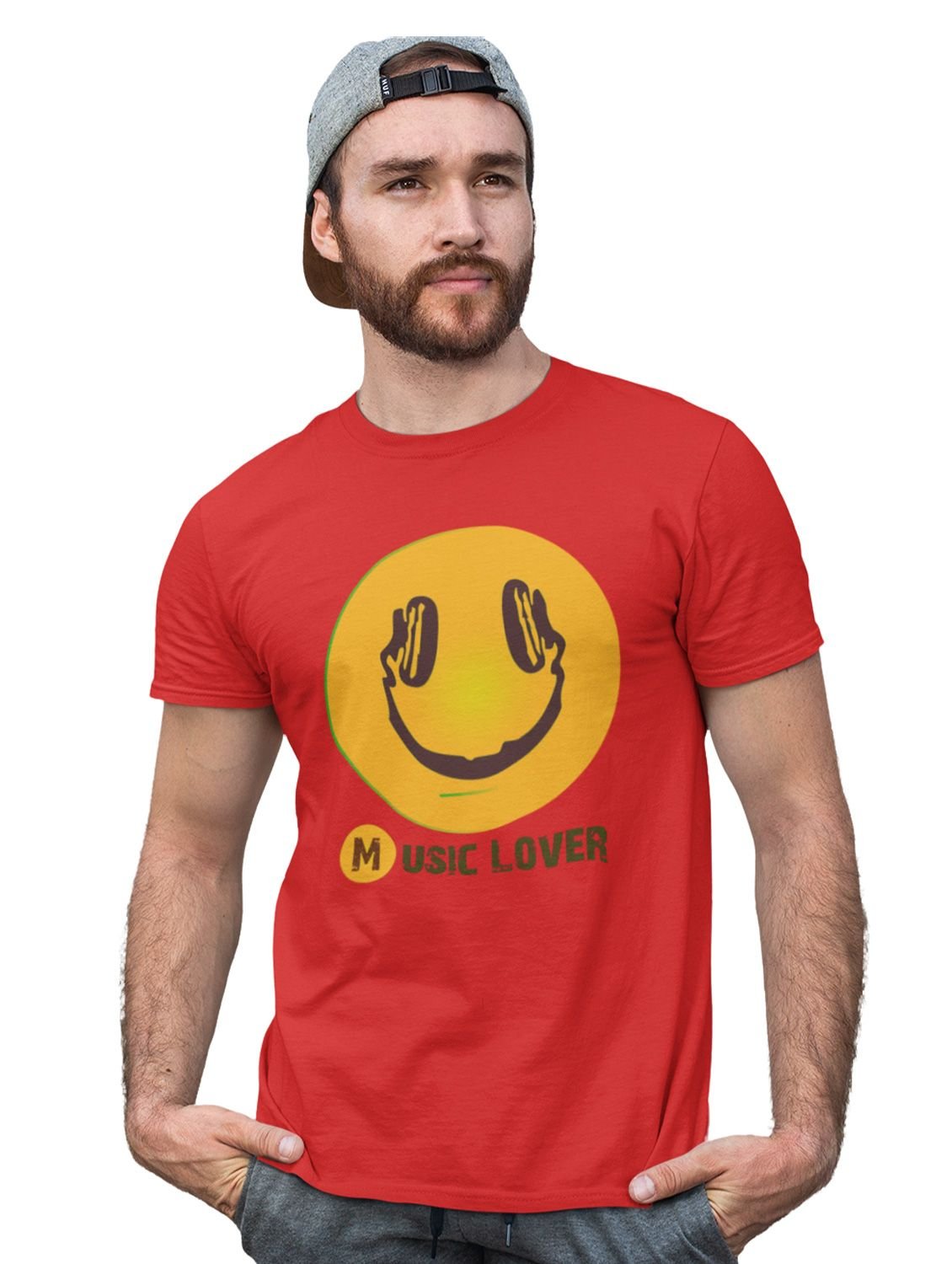 Smile with a Headphone Blend T-shirt (Red) - Clothes for Emoji Lovers - Foremost Gifting Material for Your Friends and Close Ones