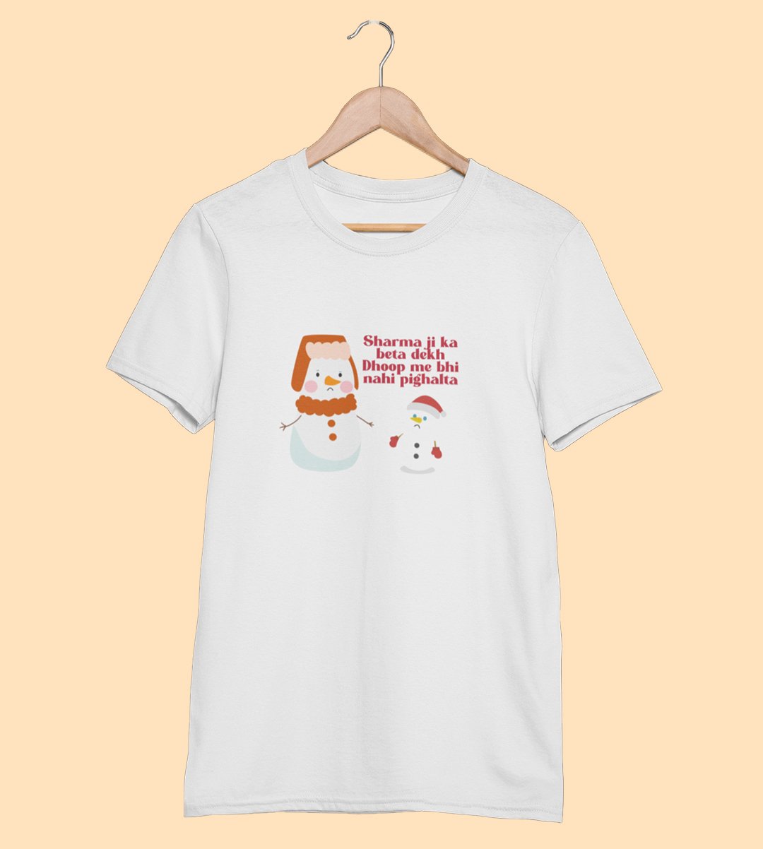 Snowman Sharmaji : Beautifully Crafted T-shirt (White) Perfect Gift For Secret Santa