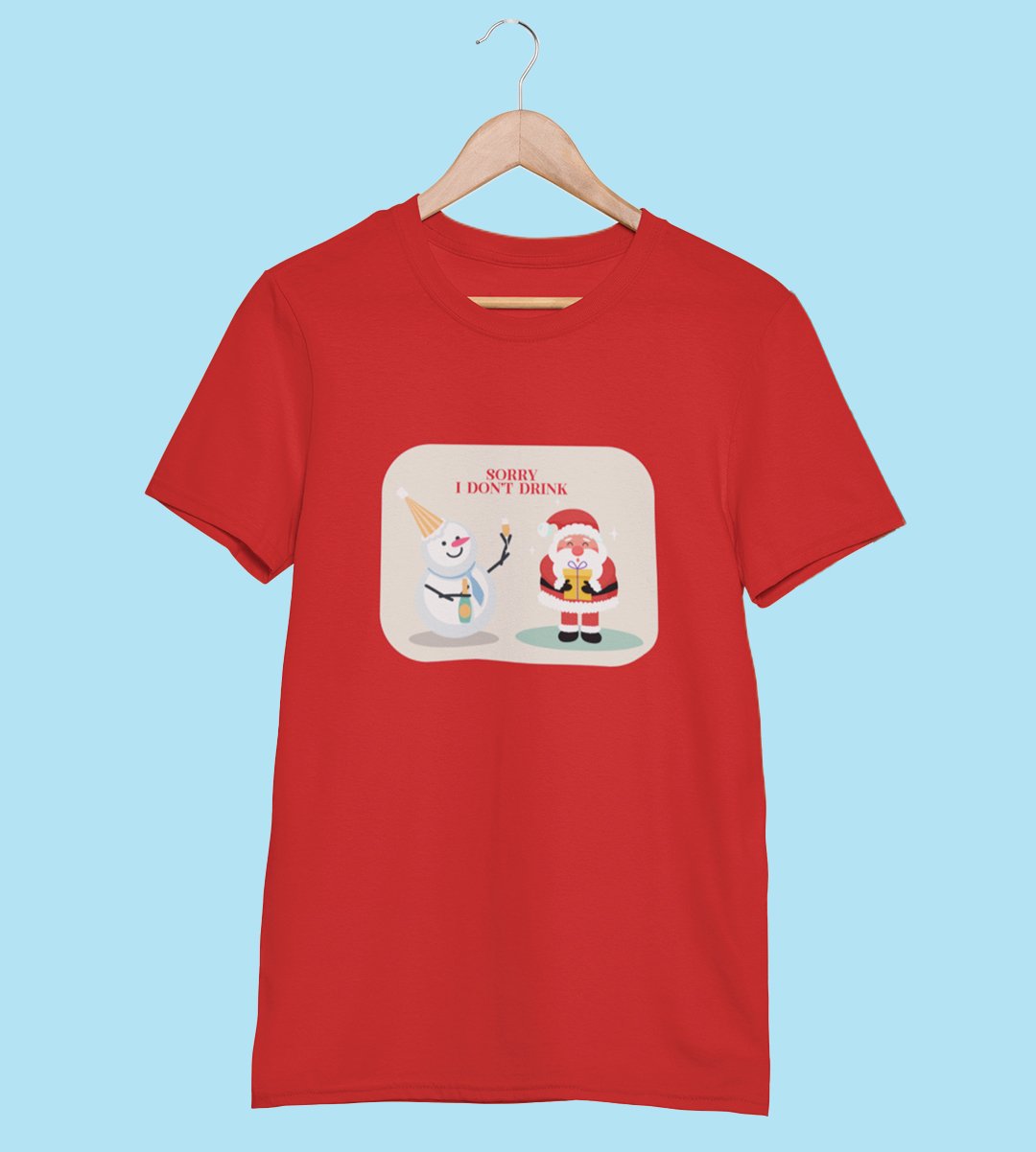 Sober Santa: Funniest Printed T-shirt (Red) Best Gift For Boys Girls