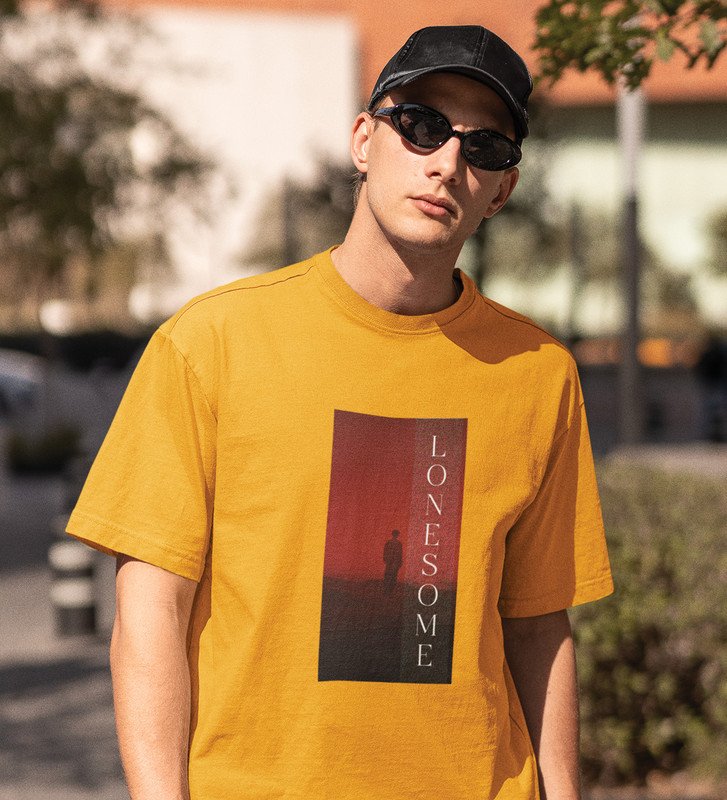 Solitary, Yellow Urban Explorer: Stay on Trend with Front Printed Round Neck Tee