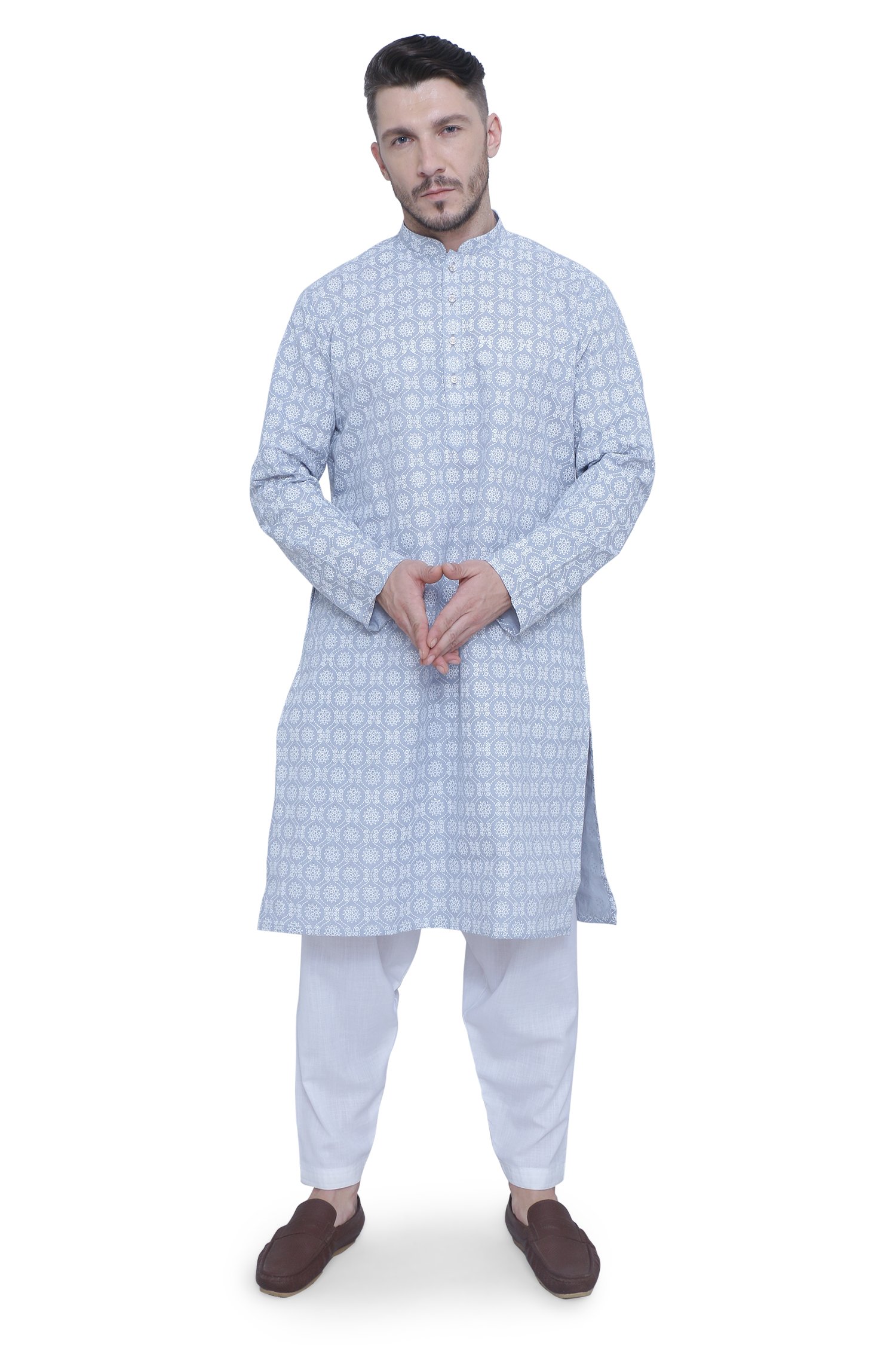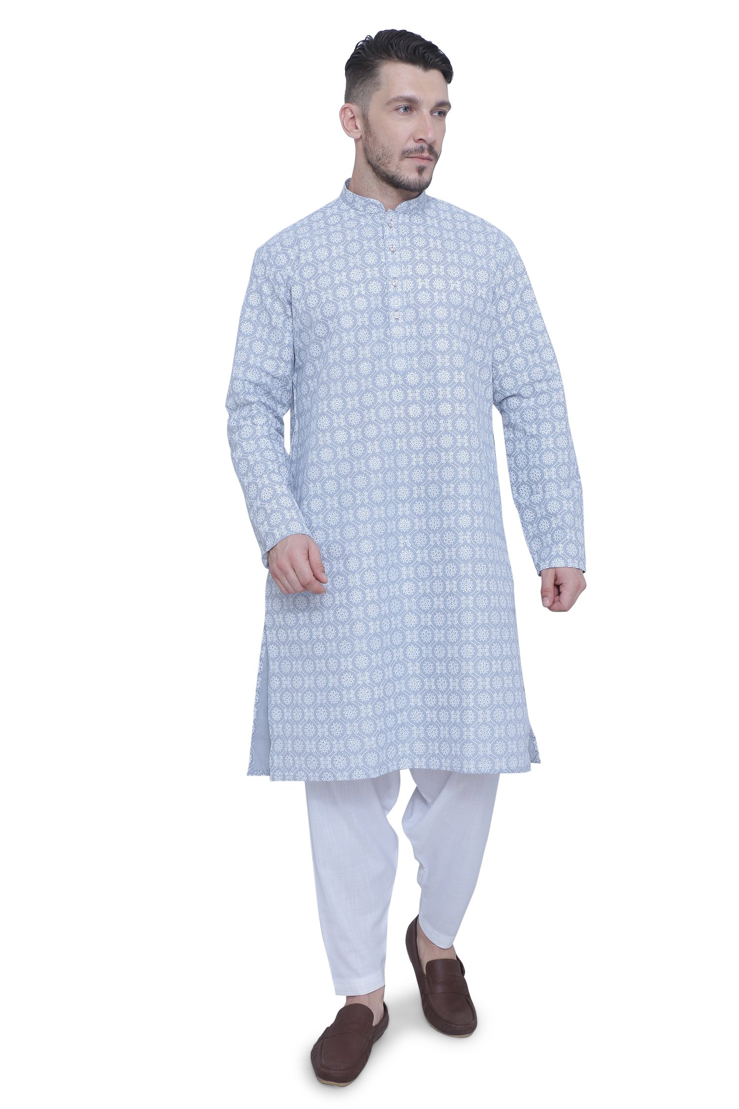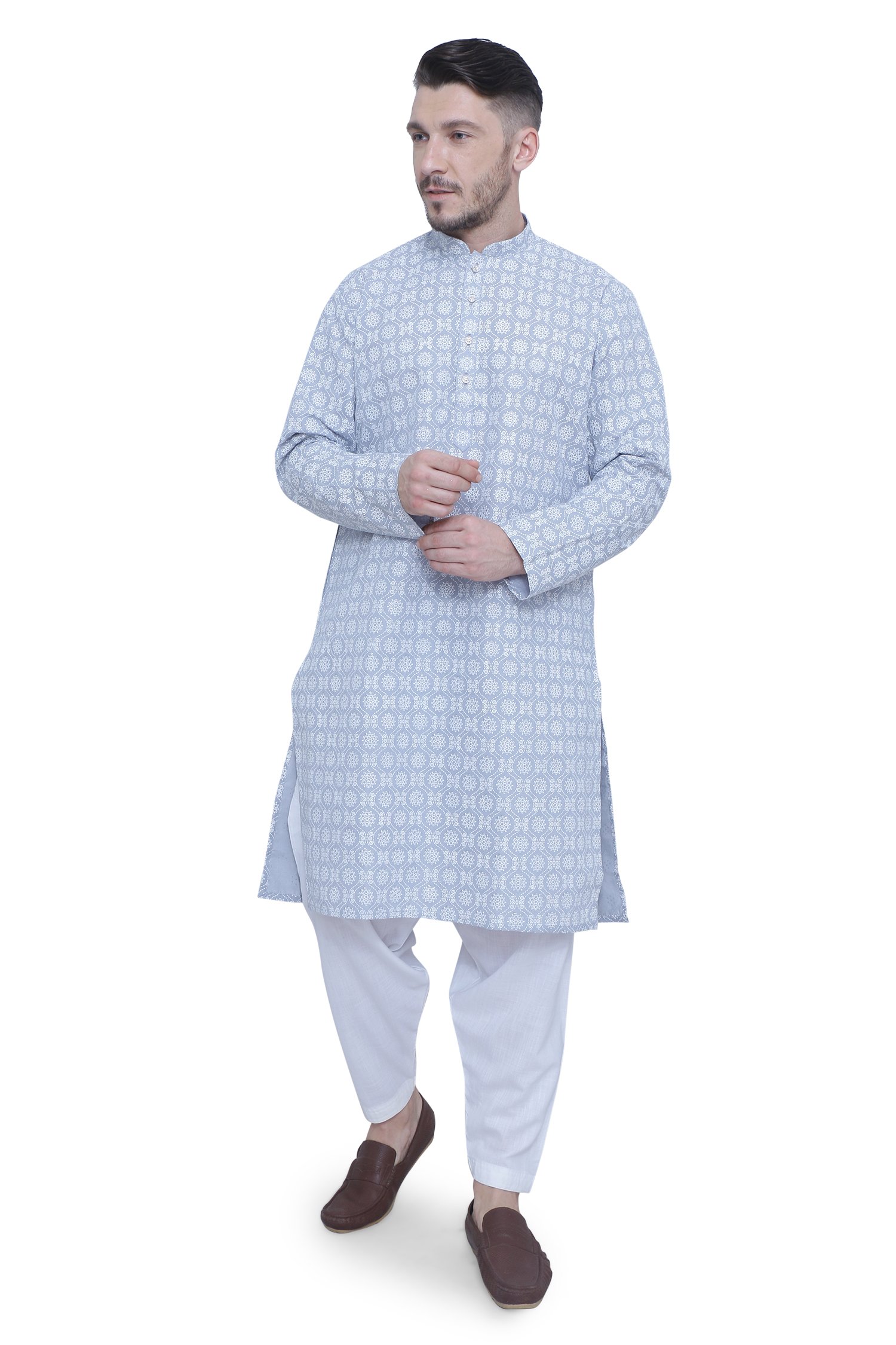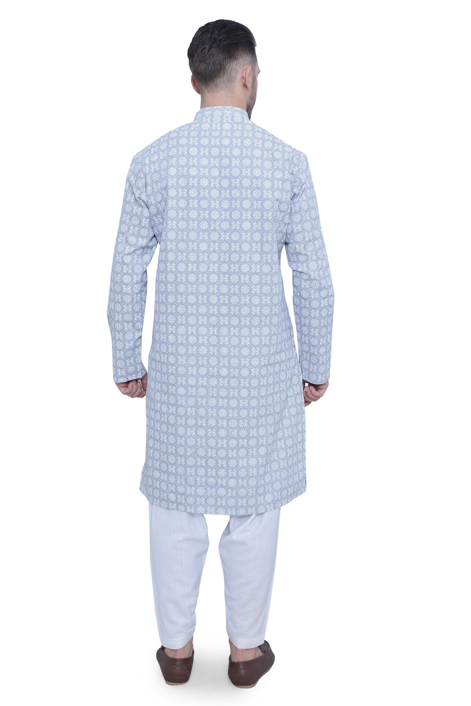 Add a touch of charm to your wardrobe with our Gray Floral Print Cotton Men's Kurta. Crafted from pure cotton, this kurta offers exceptional comfort and breathability, making it an ideal choice for any occasion. Enhance your style with the subtle charm of this Gray Floral Print Cotton Men's Kurta. The pure cotton fabric, timeless gray color, and floral print make it a versatile choice for casual gatherings, semi-formal occasions, or relaxed outings. Stay comfortable and fashionable in this unique kurta.
