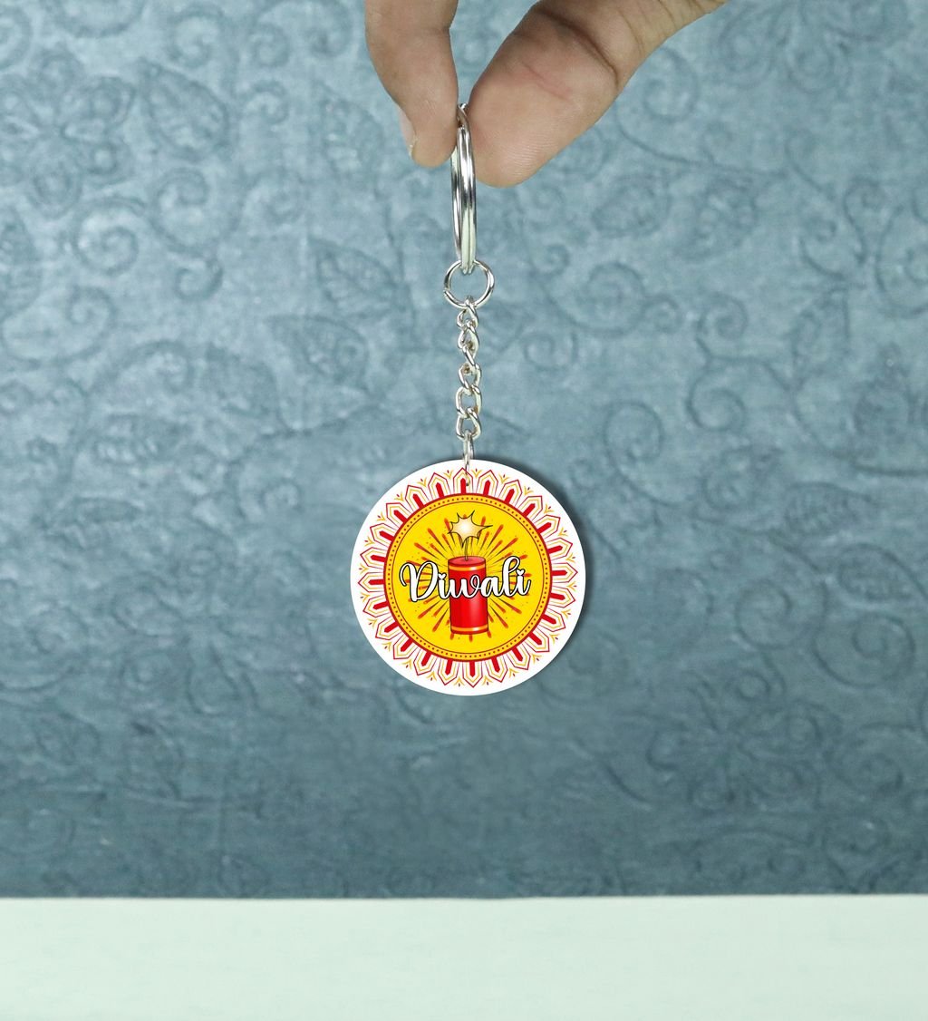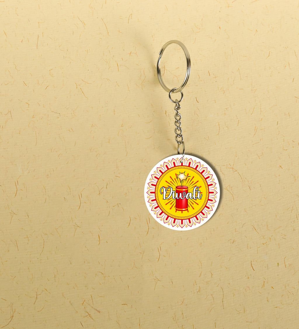 Sparkling Diyas Glow Diwali Printed Round Keychain Pack of 2