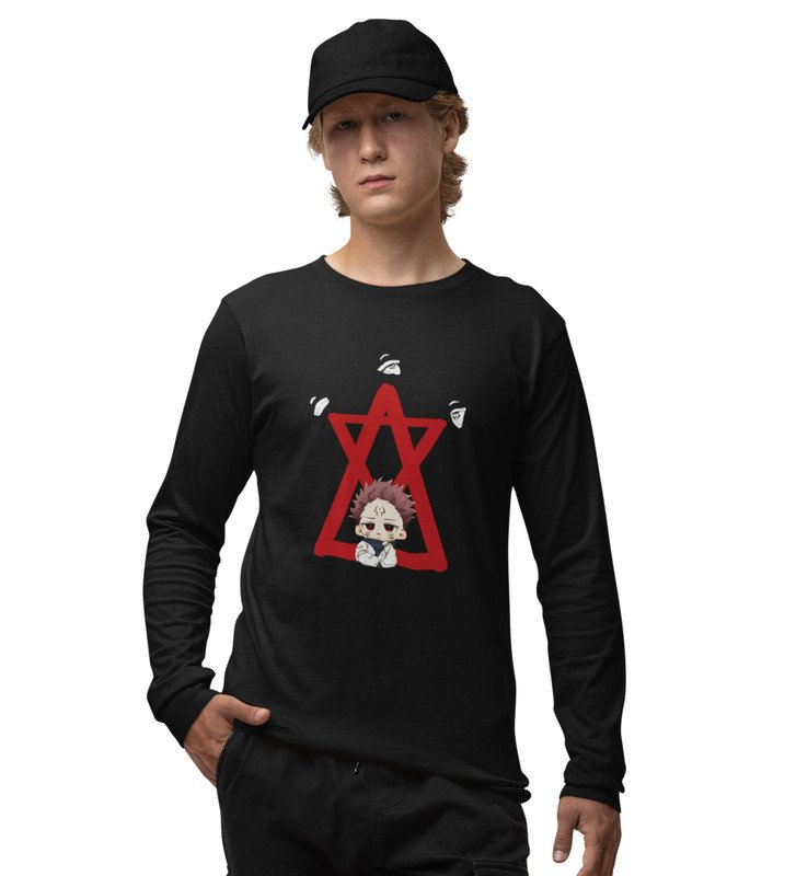 Spiritual Itadori Cotton Black Printed Full Sleeves Tshirt For Mens and Boys