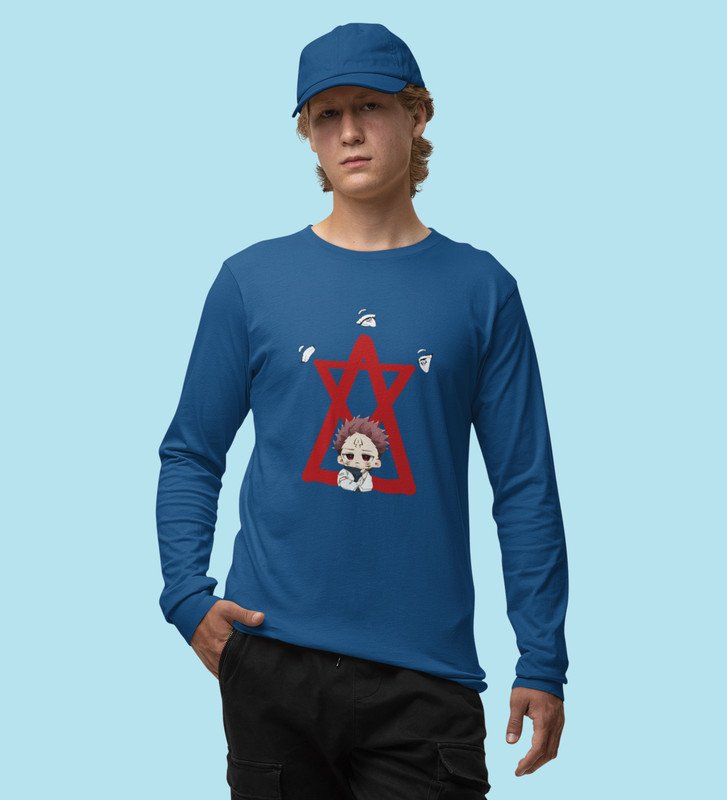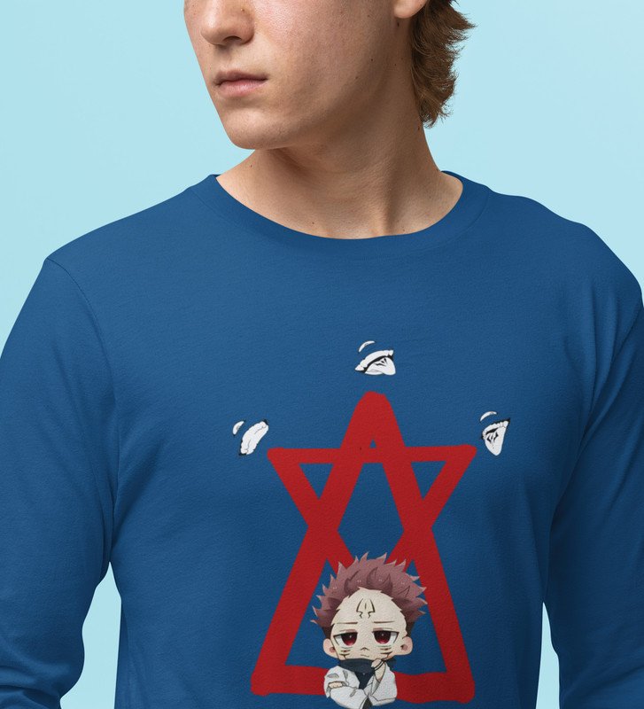 Spiritual Itadori Cotton Blue Printed Full Sleeves Tshirt For Mens and Boys