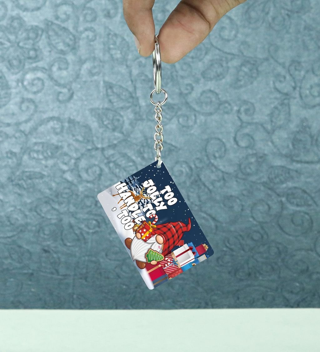 Spreading Extra Cheer Too Jolly to Handle Too Printed Keychain Pack of 2