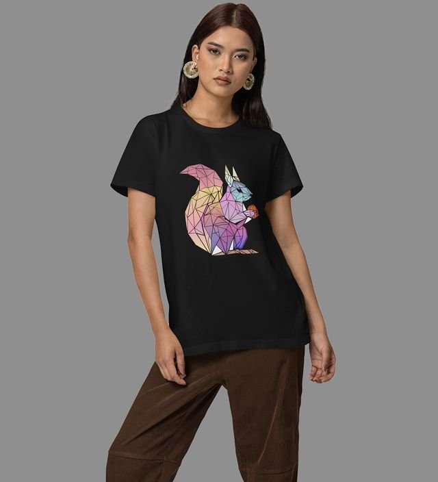 Squirrel of Pastel Realms: Graphic Printed Black T-Shirt