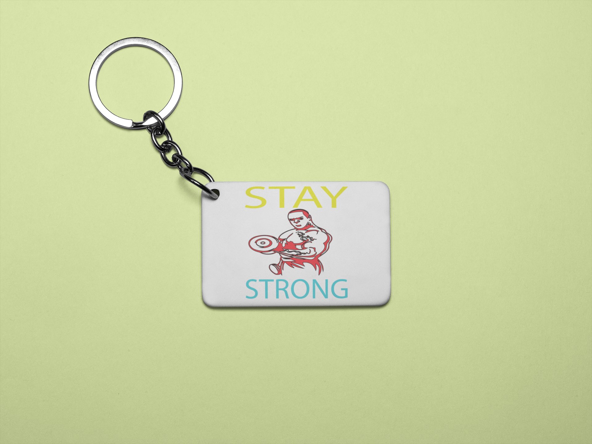 Stay Strong, (BG Yellow and White) - Printed Keychains for gym lovers(Pack of 2)