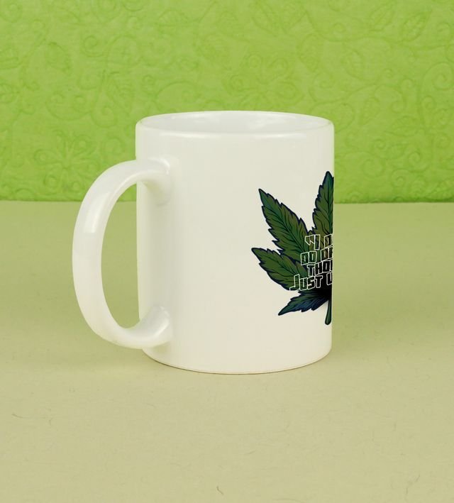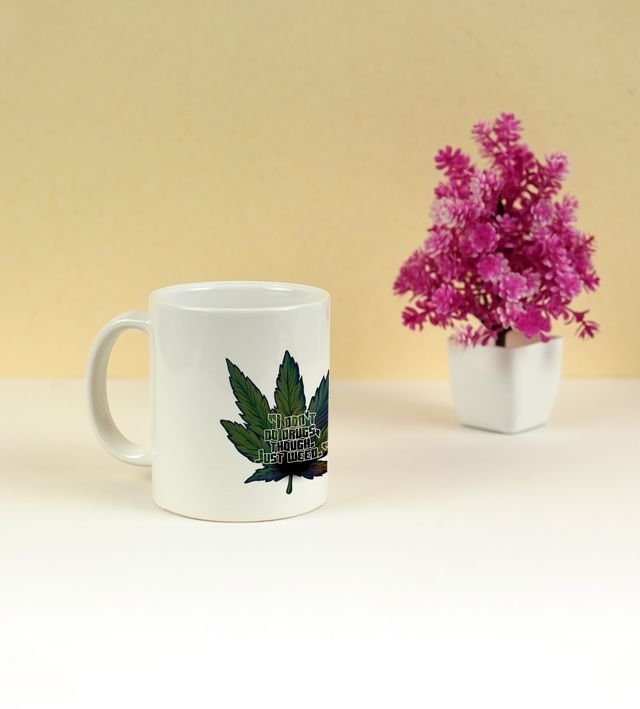 Start your day with a burst of vibrant energy! This printed coffee mug features a psychedelic leaf artwork surrounded by colorful flame-like patterns