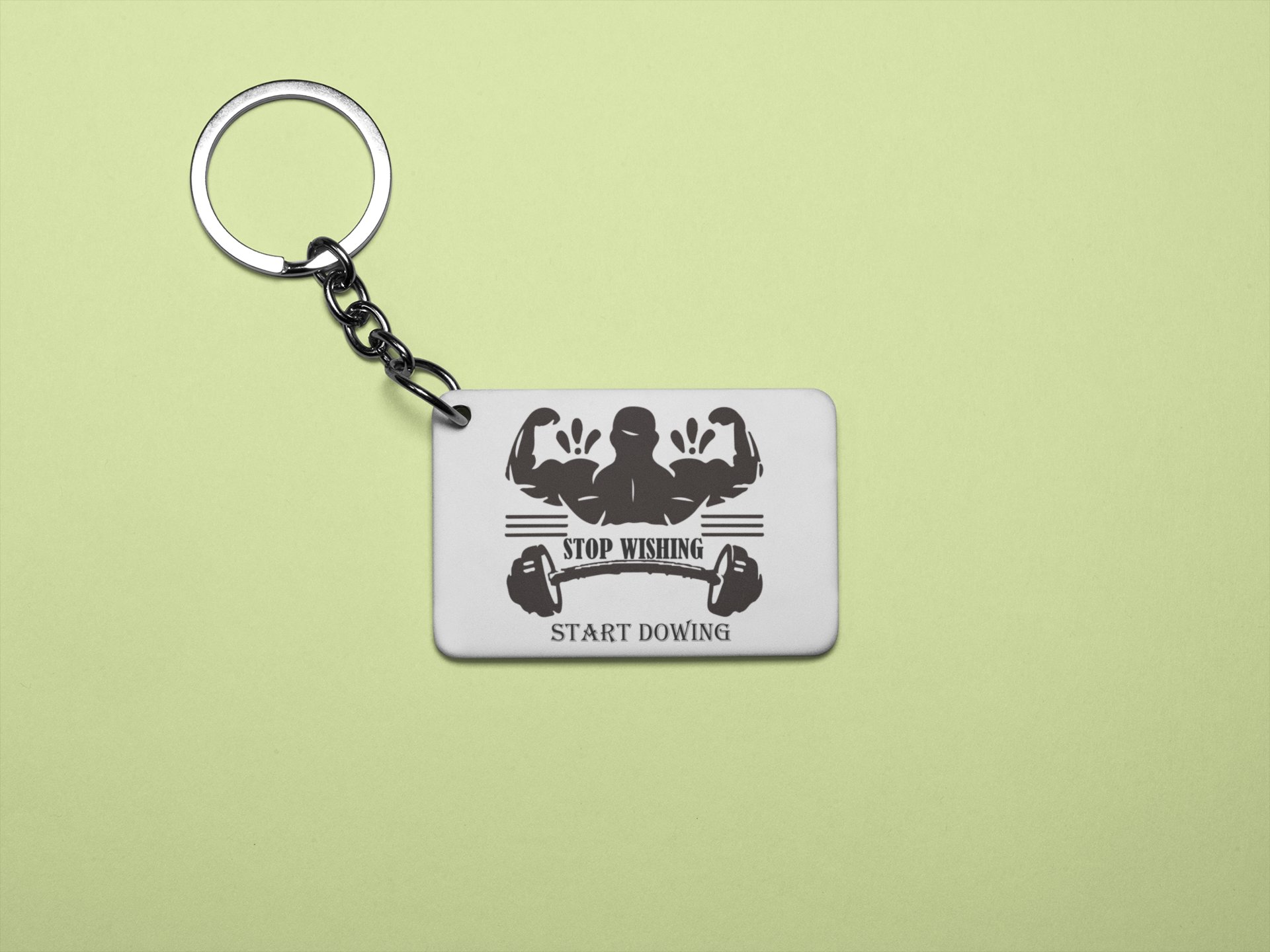 Stop Wishing, Start Dowing, (BG Black) - Printed Keychains for gym lovers