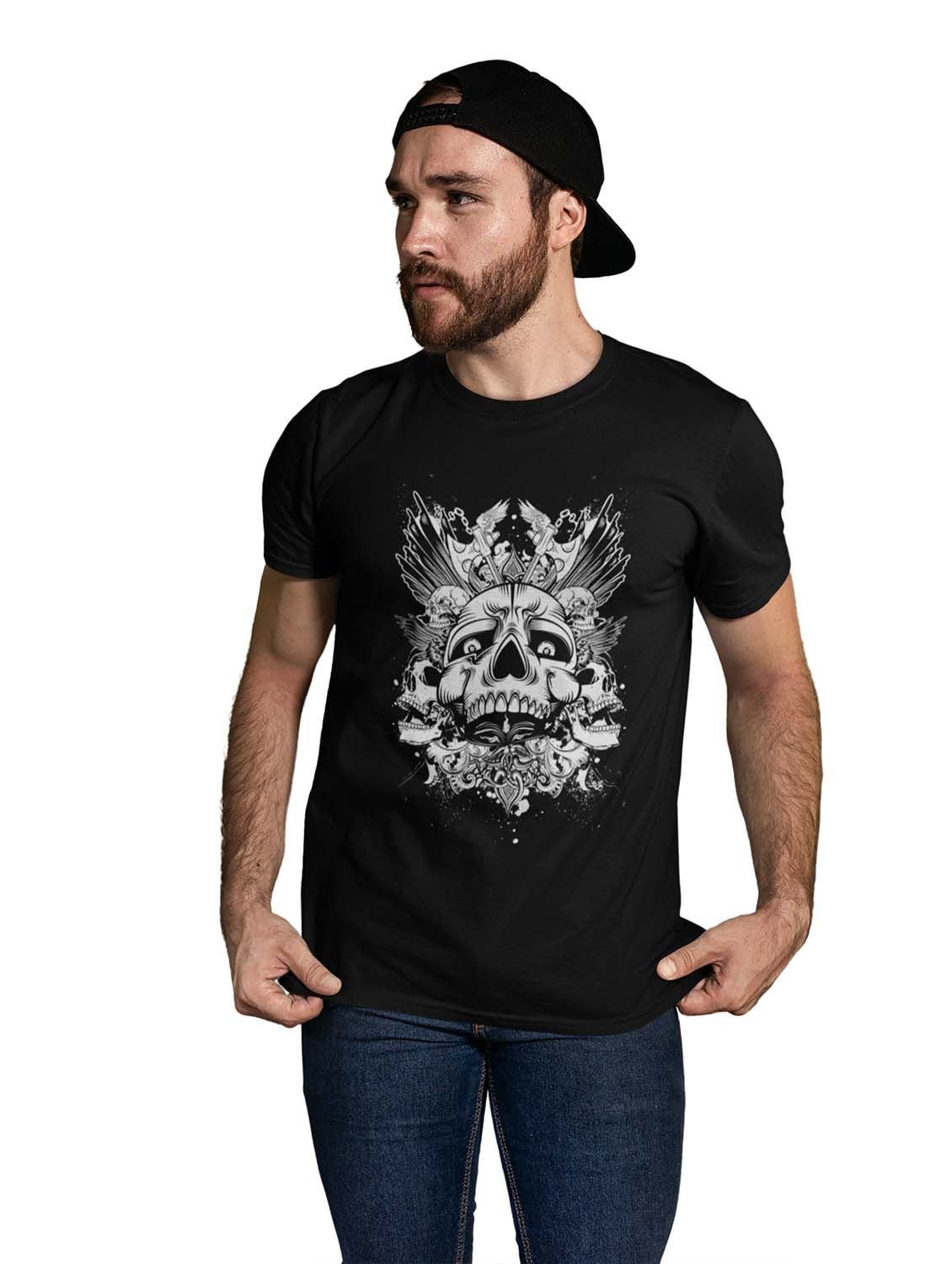 The Strange Craniums Black Round Neck Cotton Half Sleeved T-Shirt with Printed Graphics