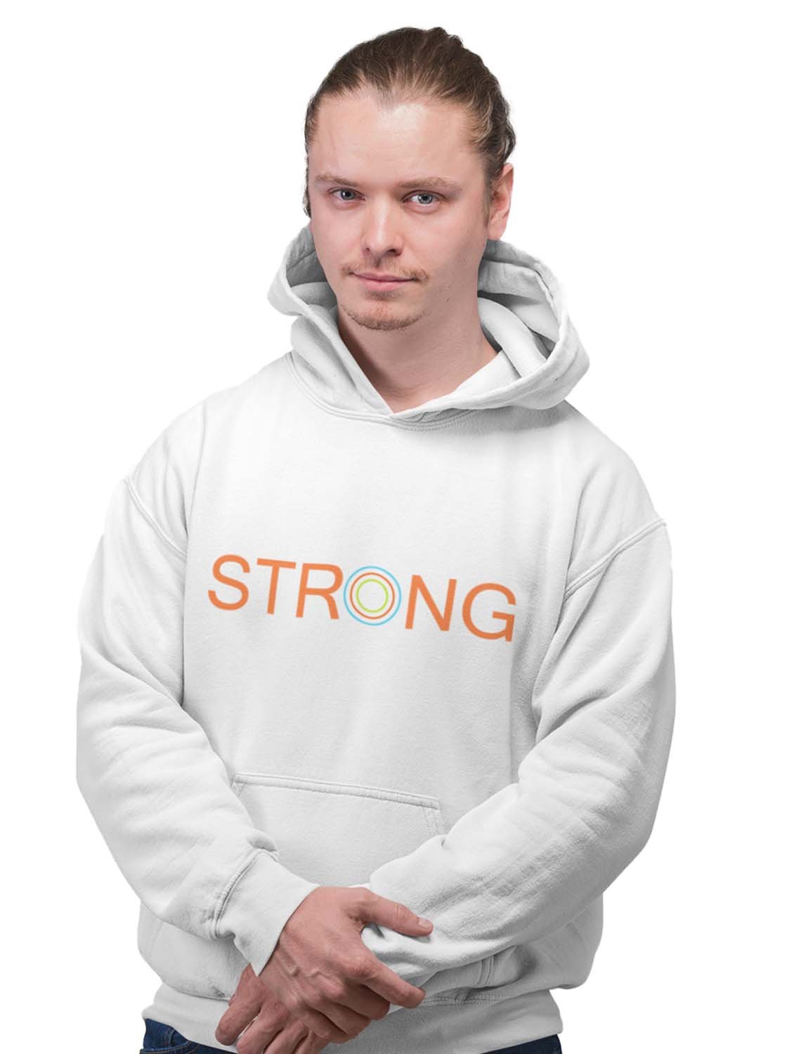 STRONG Text printed activewear white hoodies for winter casual wear specially for Men