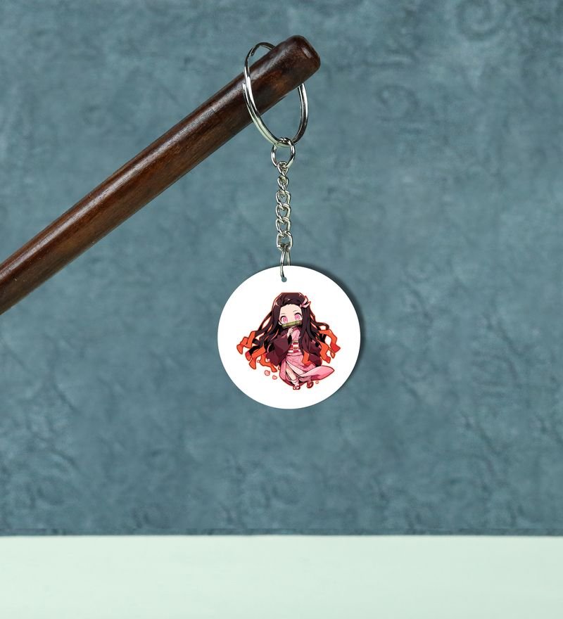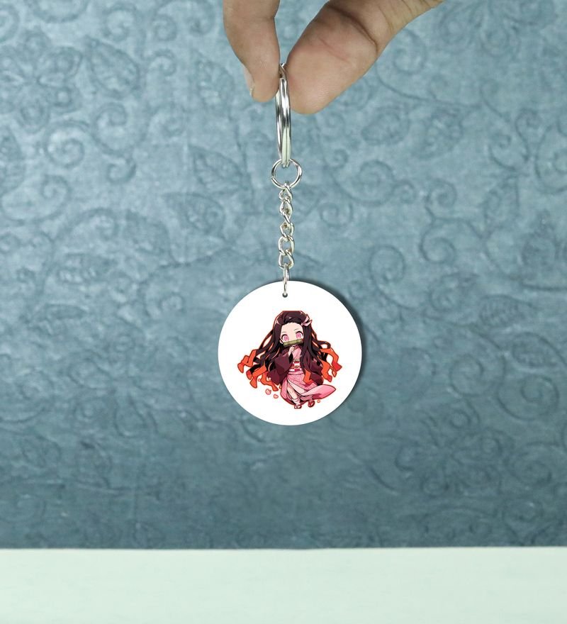 Stylish Anime Girl Design Printed Round Keychain Pack of 2