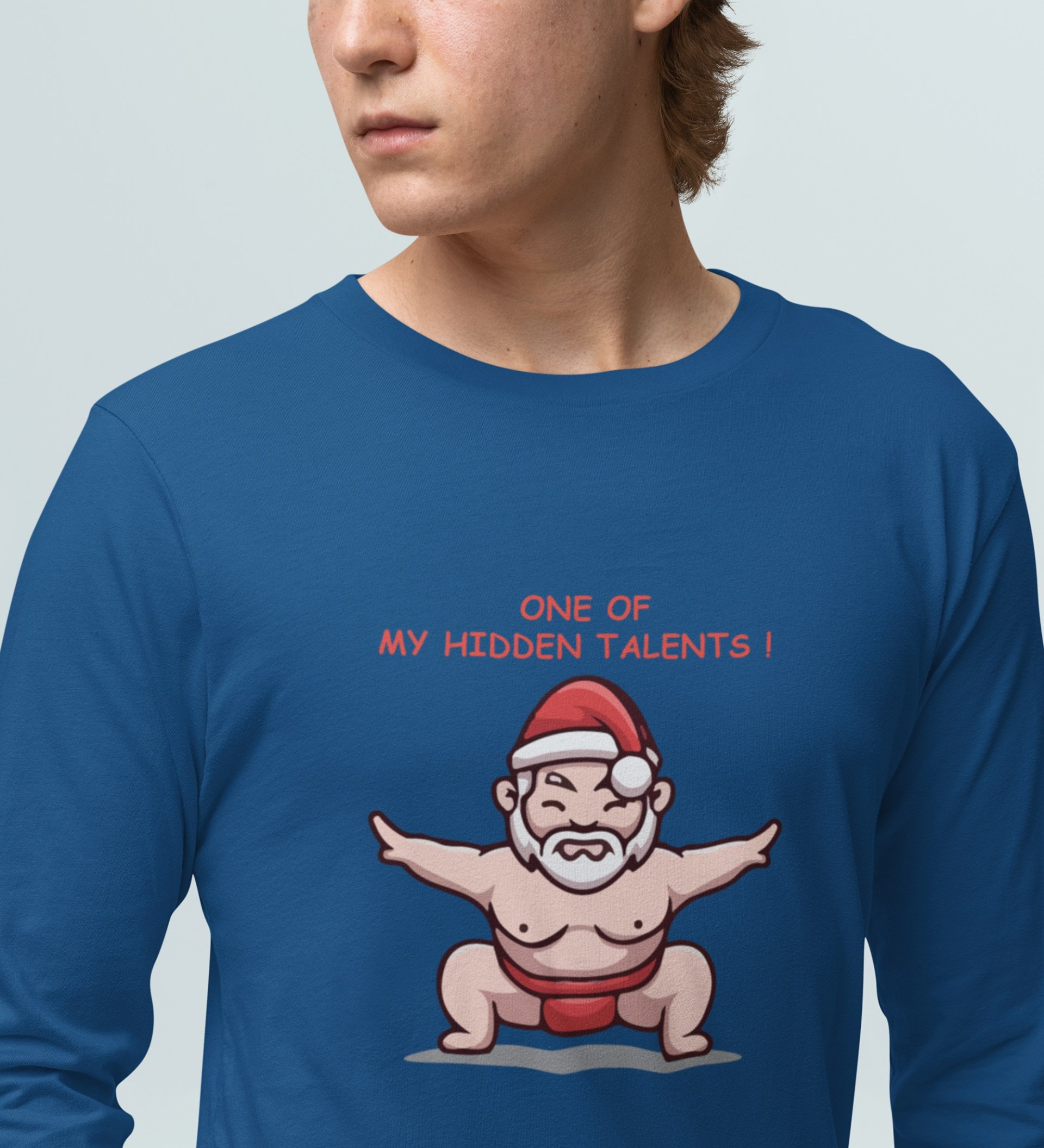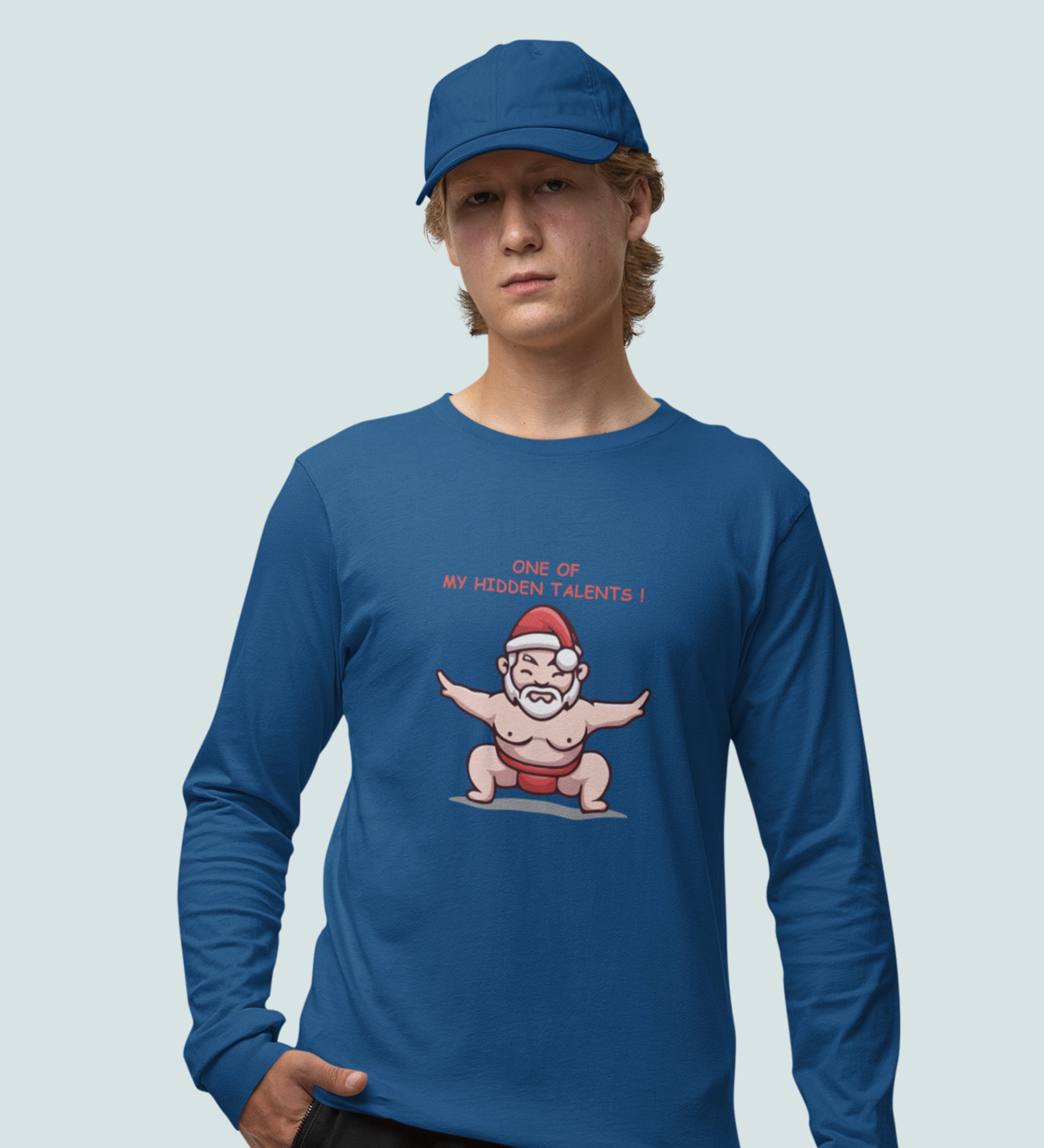 Sumo Santa: Unique DesignedFull Sleeve T-shirt Blue Perfect Gift For Boys Girls