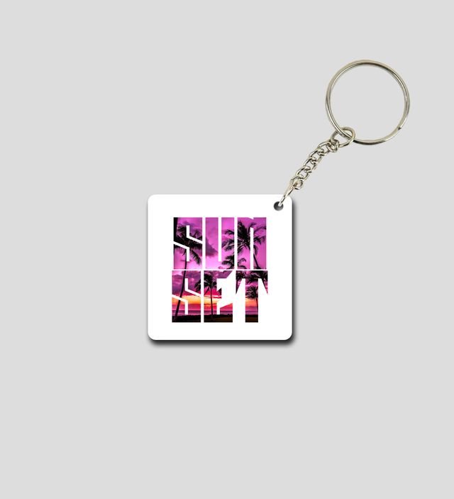 Sunset and Palms in Urban Typography Printed Keychain Pack of 2