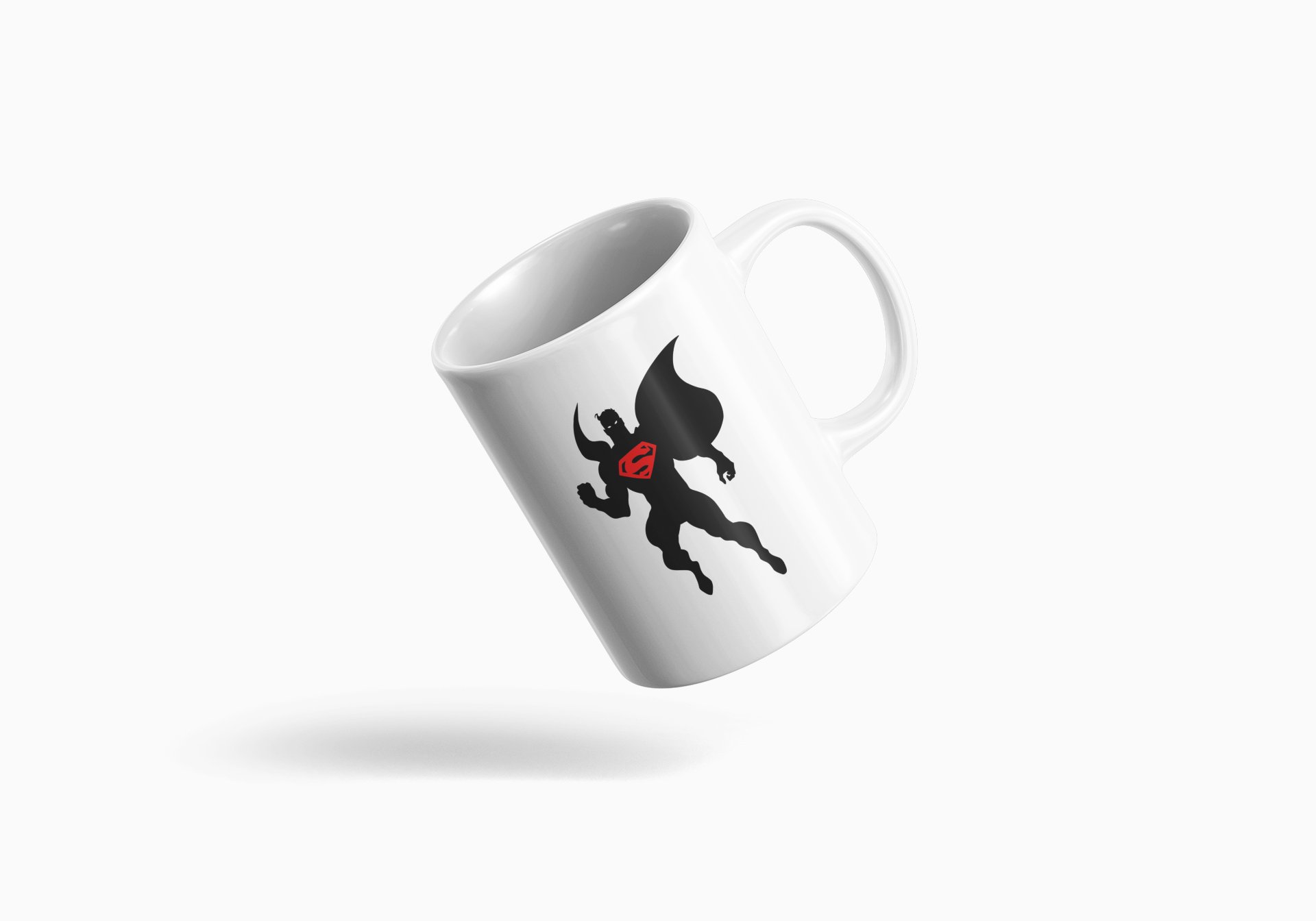 Superman in black - animation themed printed ceramic white coffee and tea mugs/ cups for animation lovers