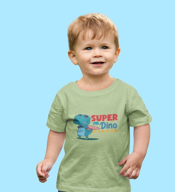 SuperoHero Dino, Boys Printed Crew Neck T-shirt (olive green)