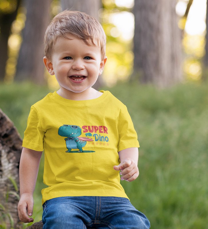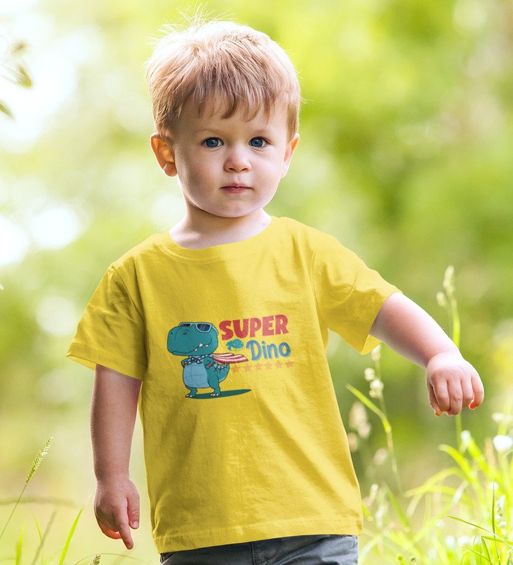 SuperoHero Dino, Boys Printed Crew Neck Tshirt (Yellow)