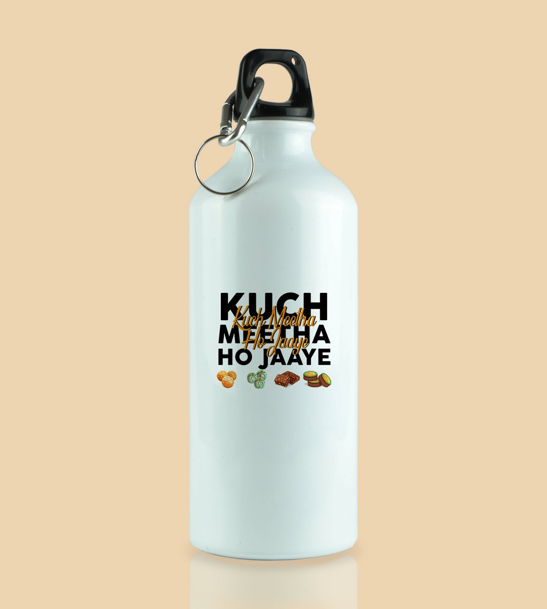 Satisfy your sweet cravings with our "Sweet Indulgence" sipper bottle. The message "Kuch Meetha Ho Jaye" invites you to dive into a delightful world of sweets and treats. This playful design features an array of delectable confections, making every sip a celebration of sweetness and joy.