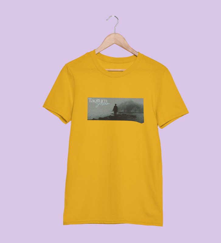 Taciturnity, Graphic Harmony: Yellow Modern Front Printed Round Neck Tee for Men