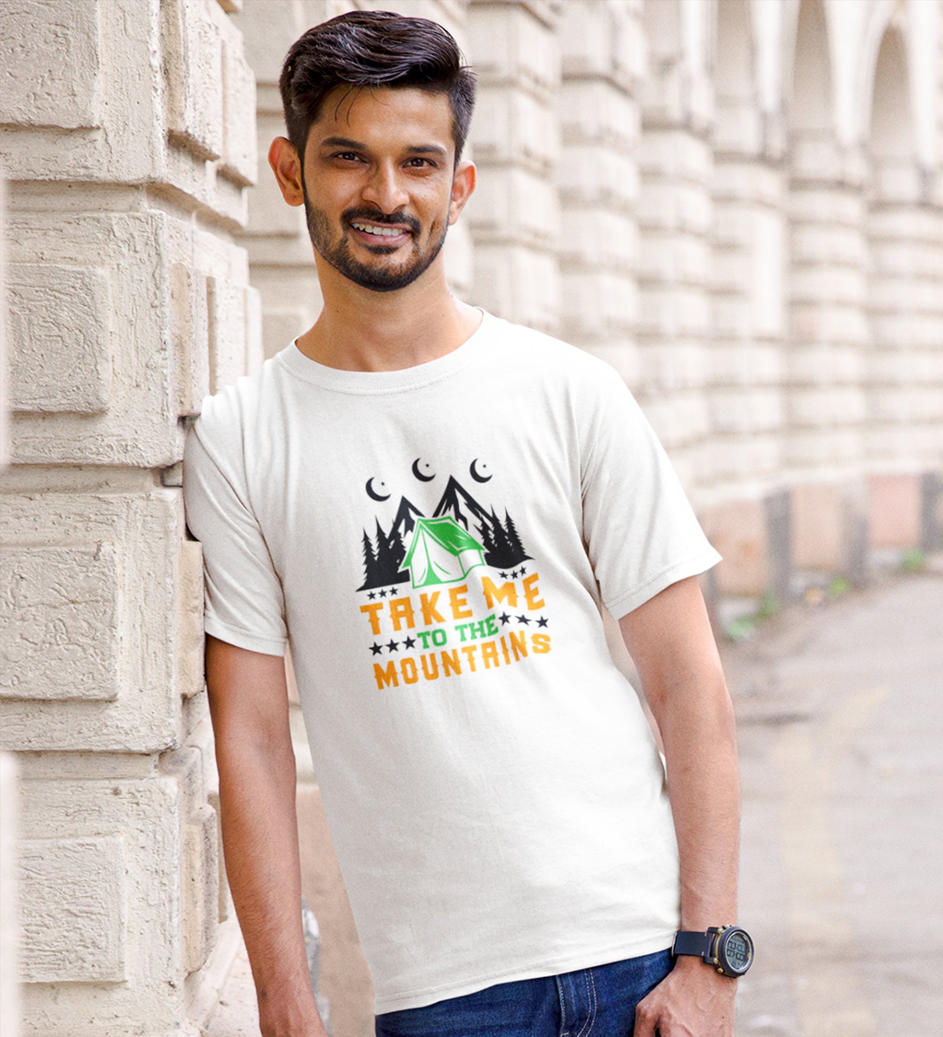 JD.TRENDS Take Me To The Mountains White Round Neck Cotton Half Sleeved Men's T-Shirt with Printed Graphics
