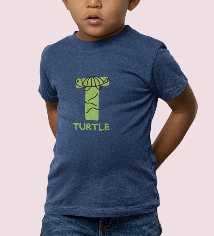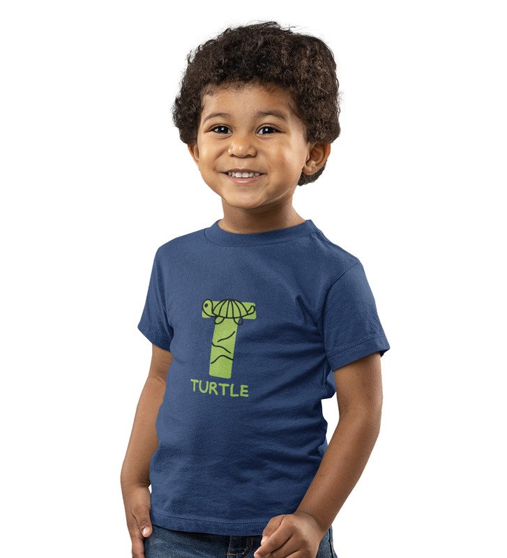 Talking Turtle, Boys Round Neck Printed Blended Cotton Tshirt (Navy blue)