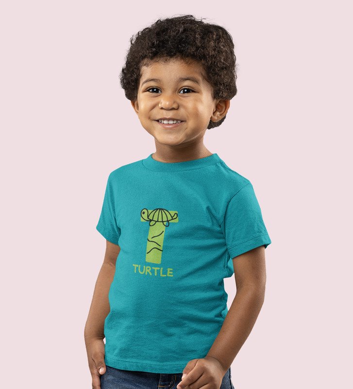 Talking Turtle, Boys Round Neck Printed Blended Cotton Tshirt (Teal)