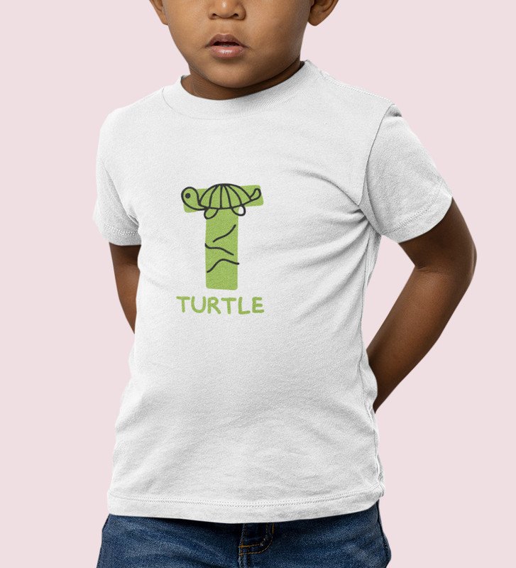 Talking Turtle, Boys Round Neck Printed Blended Cotton Tshirt (White)