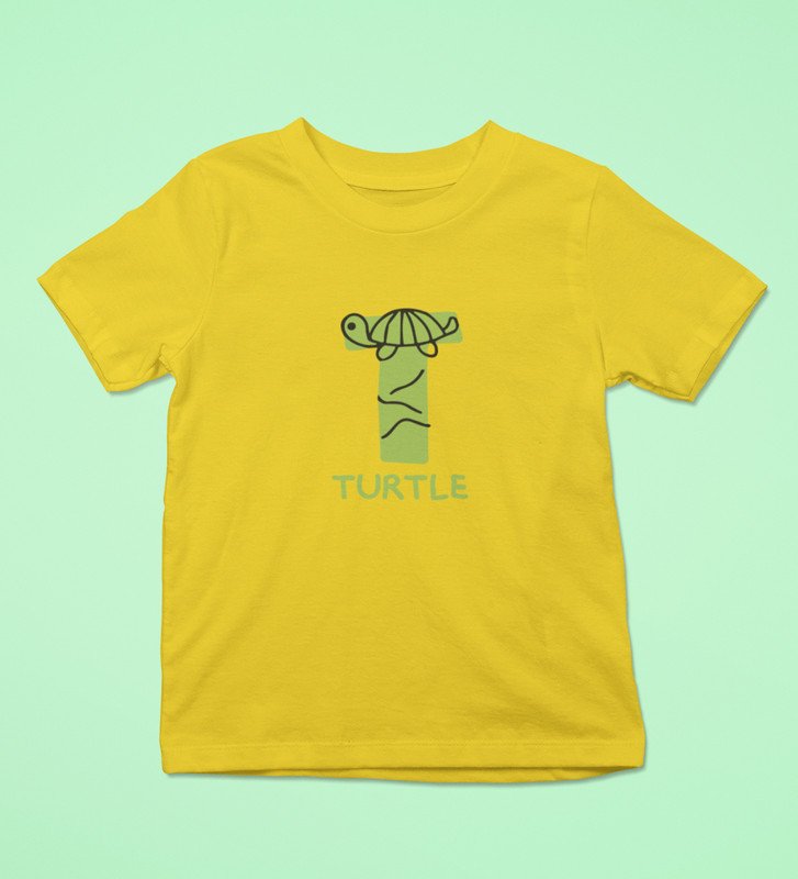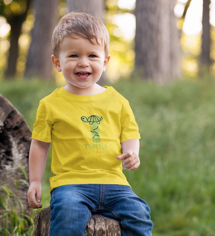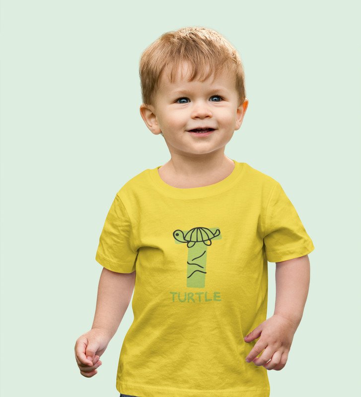 Talking Turtle, Boys Round Neck Printed Blended Cotton tshirt (yellow)