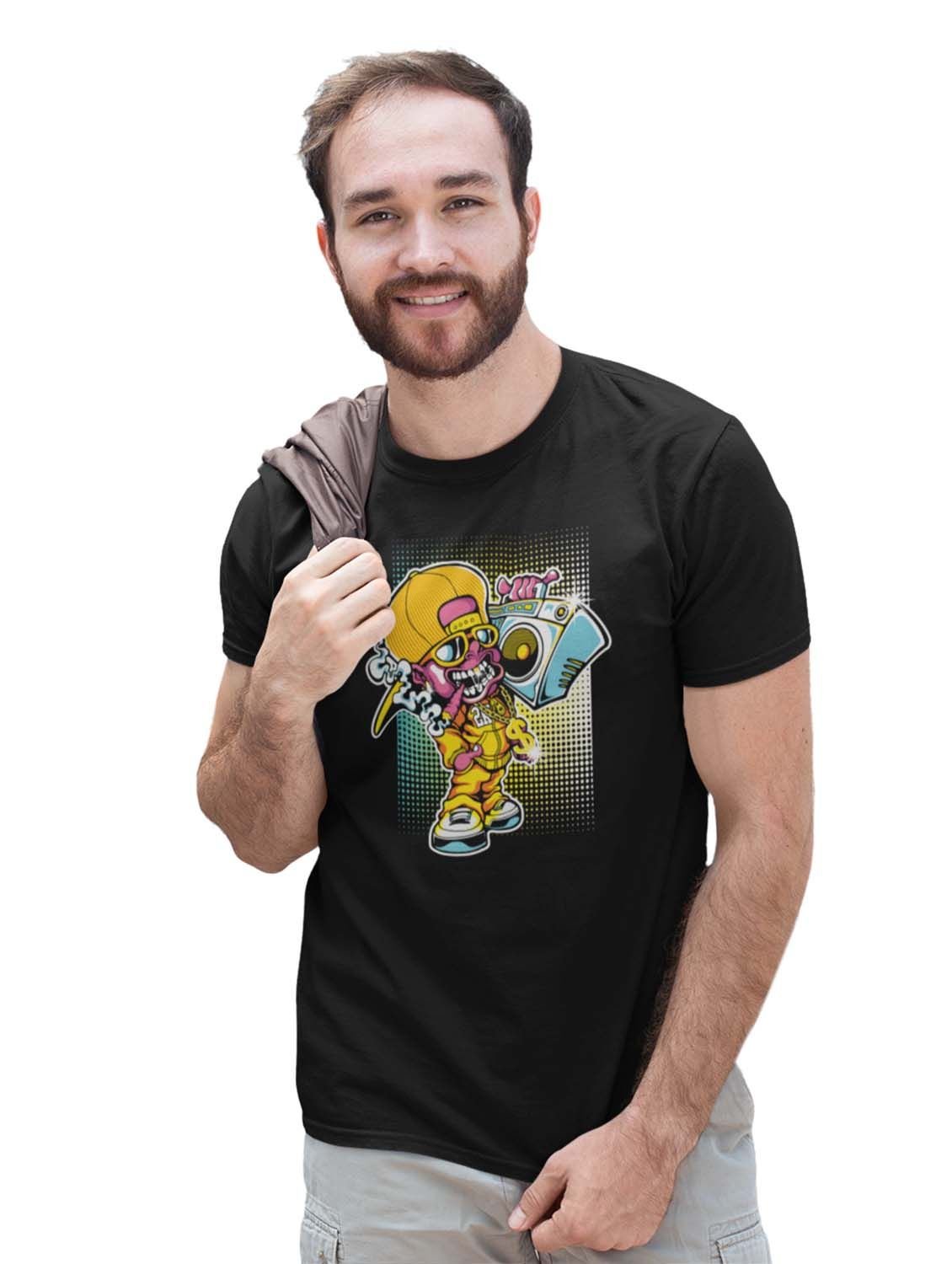 Hip-Hop Drip Black Round Neck Cotton Half Sleeved T-Shirt with Printed Graphics