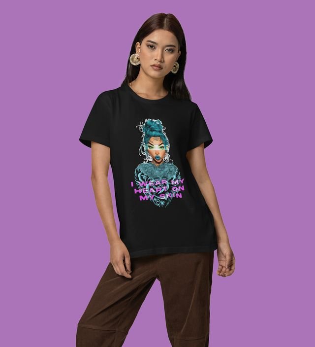 Tattooed Soul: I Wear My Heart on My Skin Graphic Printed Black T-Shirt