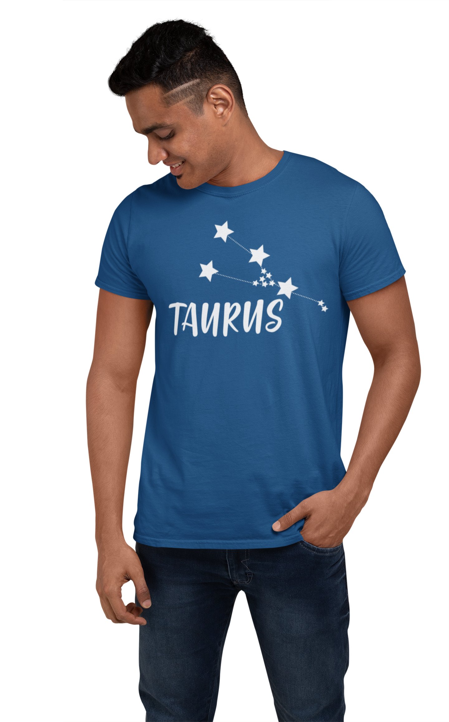 Taurus stars (BG White)(Blue T) - Printed Zodiac Sign Tshirts - Made especially for astrology lovers people