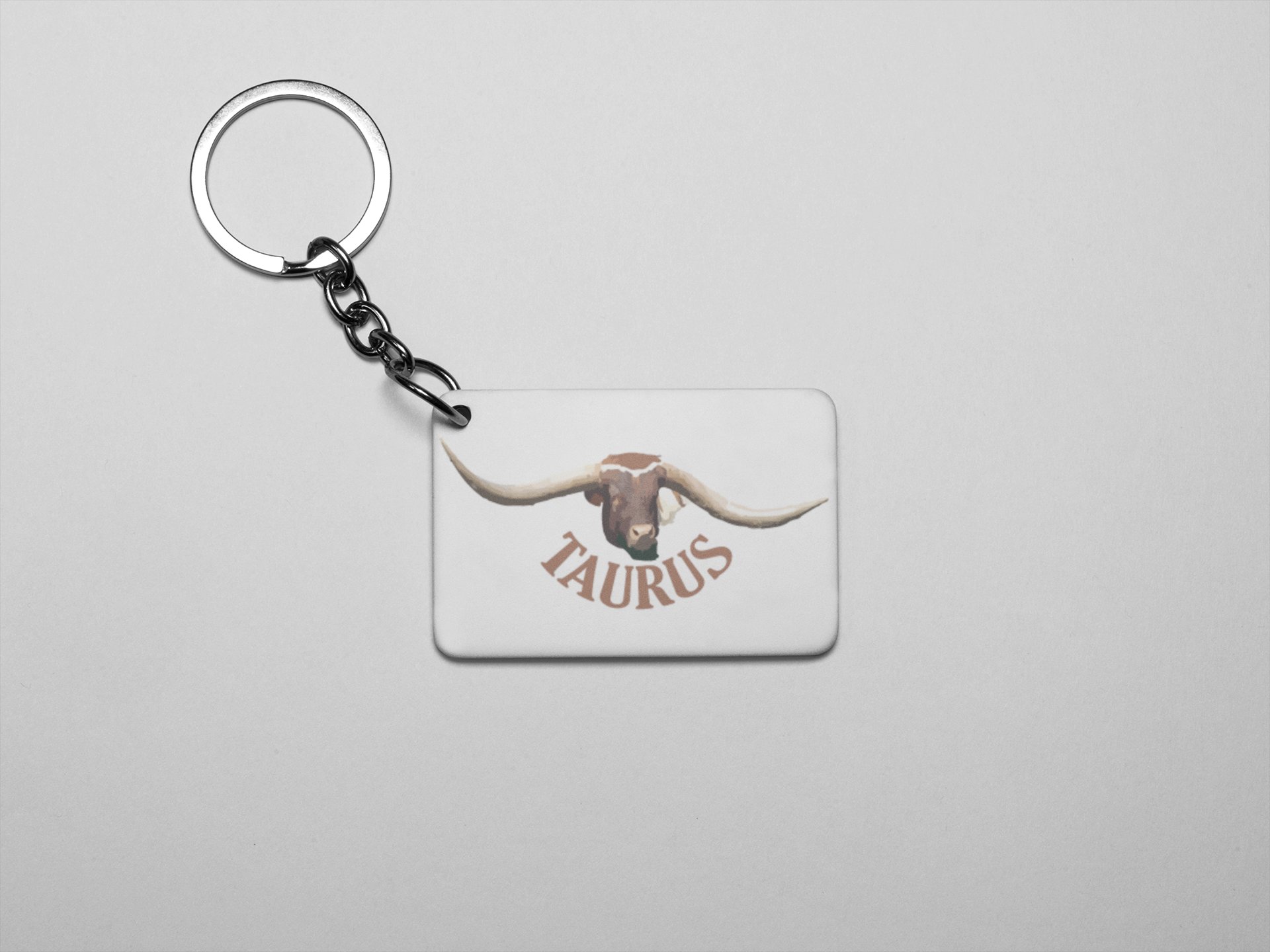 Taurus symbol, (BG Brown) - Zodiac Sign Printed Keychains For Astrology Lovers(Pack of 2)
