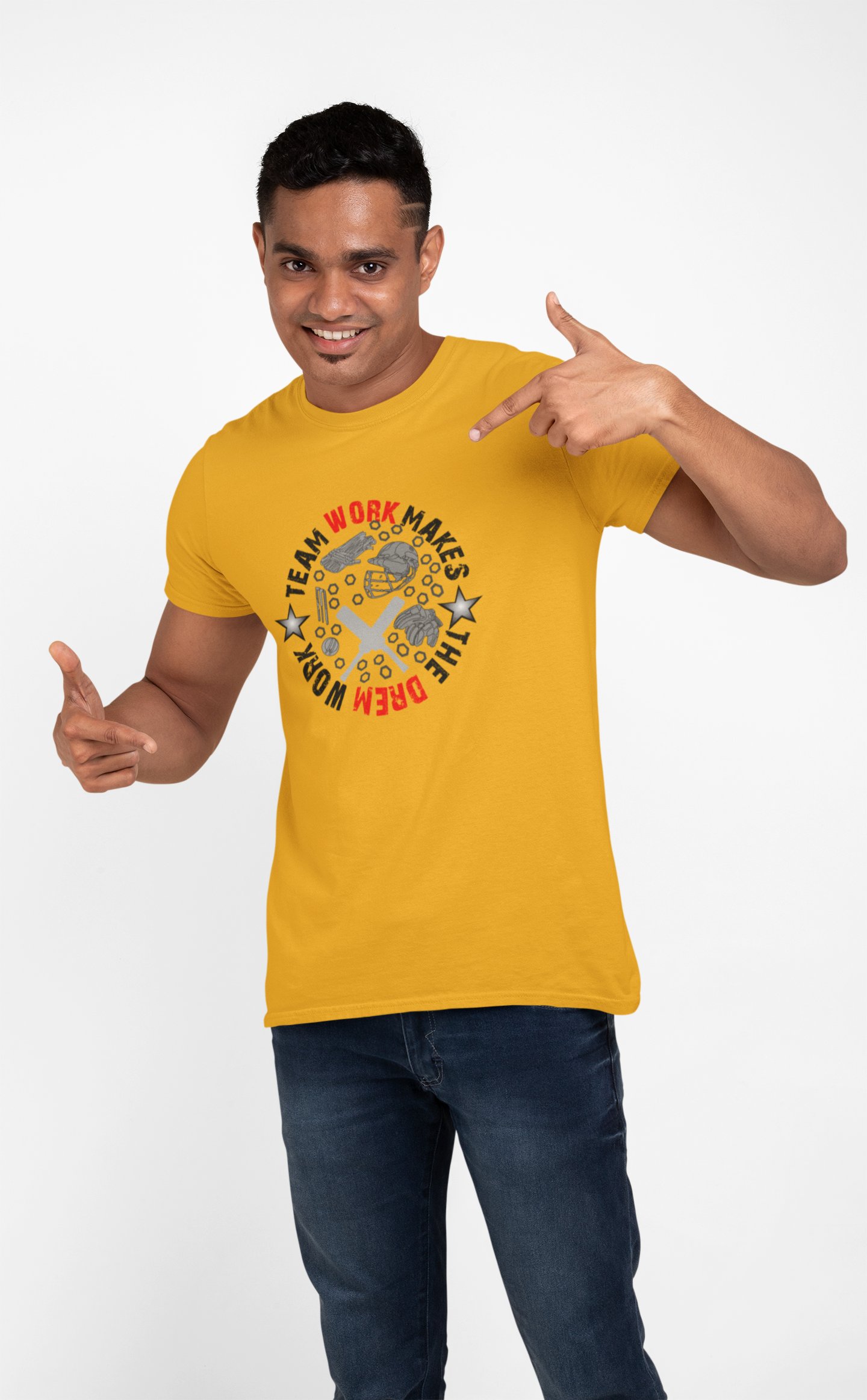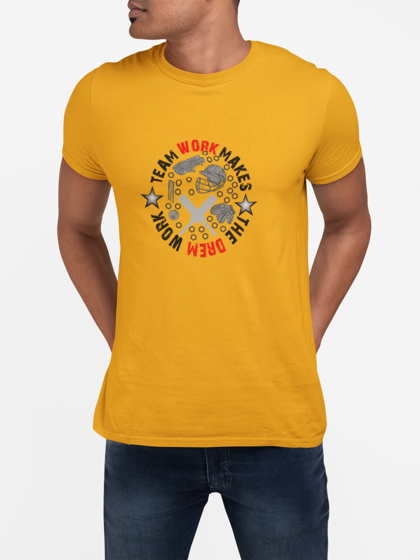 Team work makes the dream work - Yellow - Printed - Sports cool Men's T-shirt