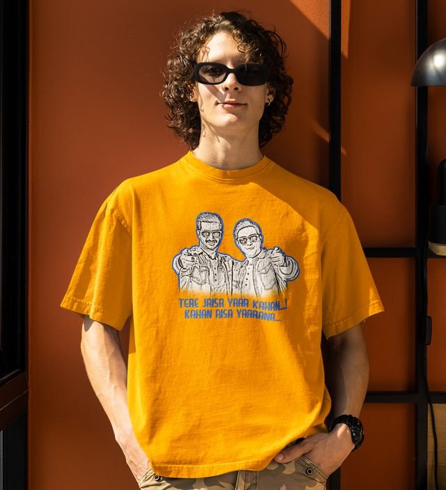 Tere Jaisa Yaar Yellow Round Neck Cotton Half Sleeved Men T-Shirt with Printed Graphics