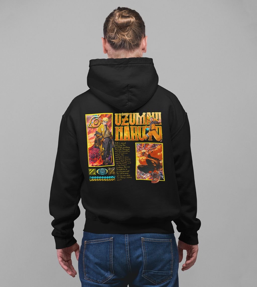The 7th Hokage and the Protector of the Hidden Leaf Printed Black Cotton Hoodie For Men